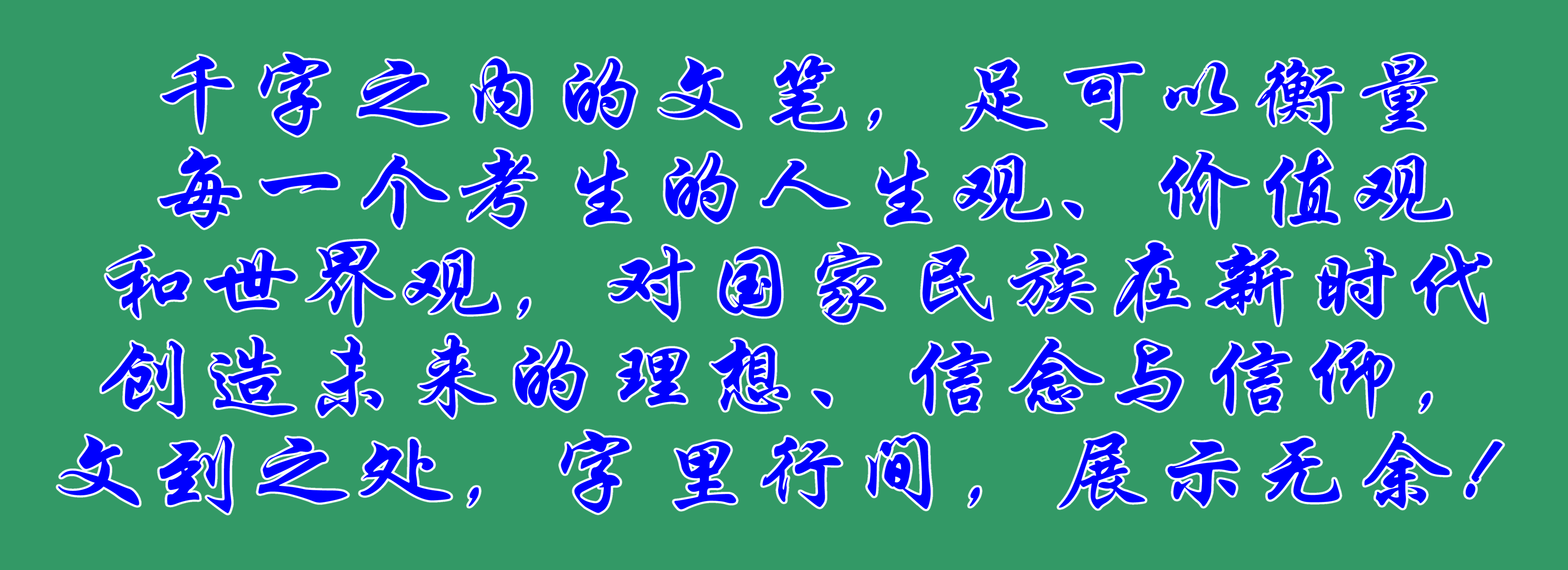 如今的高考,雖不是科舉制度的歷史延續(xù),但也是選拔人才的重要途徑。尤其是作文考試,千字之內(nèi)的文筆,足可以衡量每一個(gè)考生的人生觀、價(jià)值觀和世界觀,對(duì)國(guó)家民族在新時(shí)代創(chuàng)造未來(lái)的理想、信念與信仰,文到之處,字里行間,展示無(wú)余!