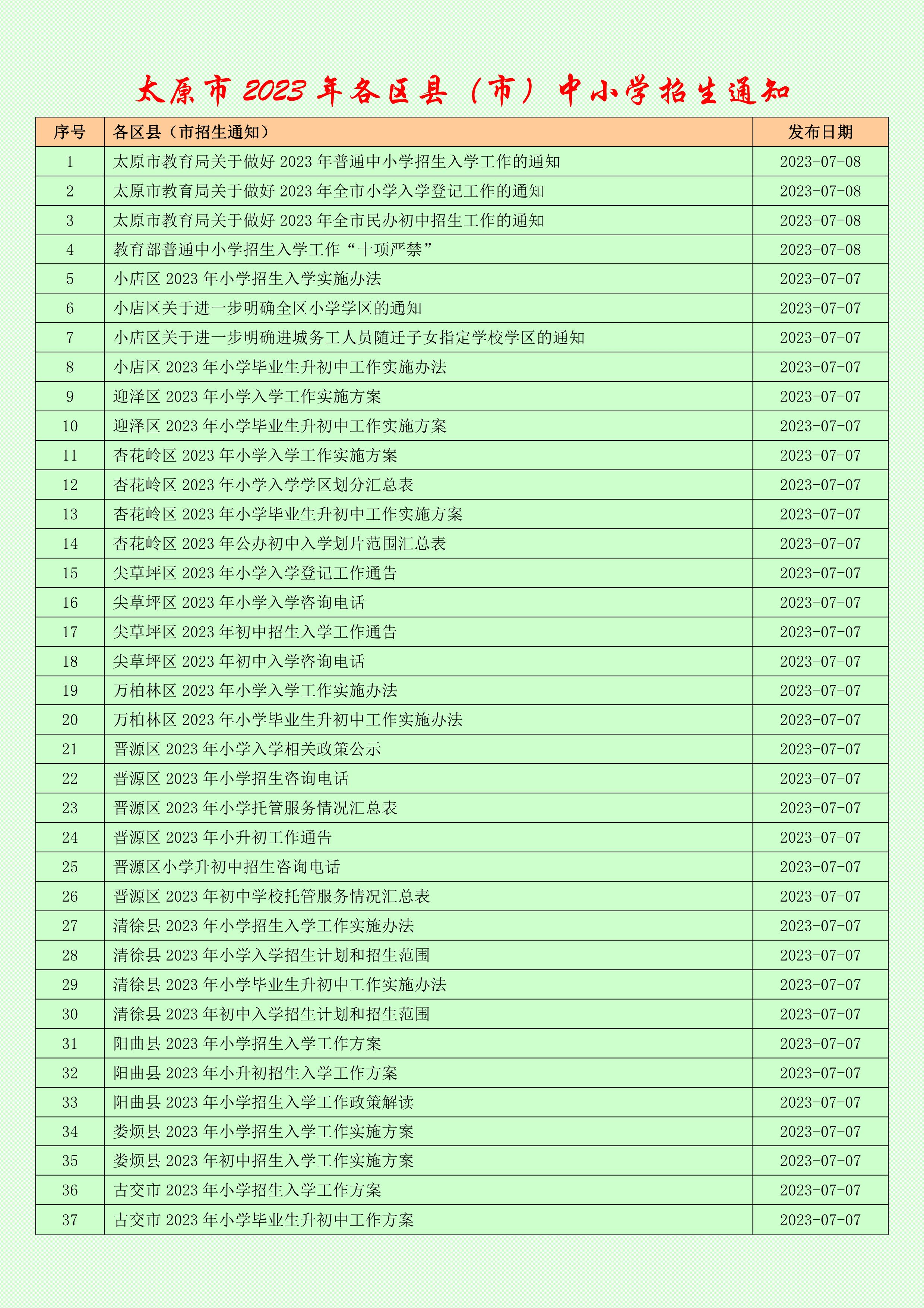 太原市2023年各區(qū)縣(市)中小學(xué)招生通知