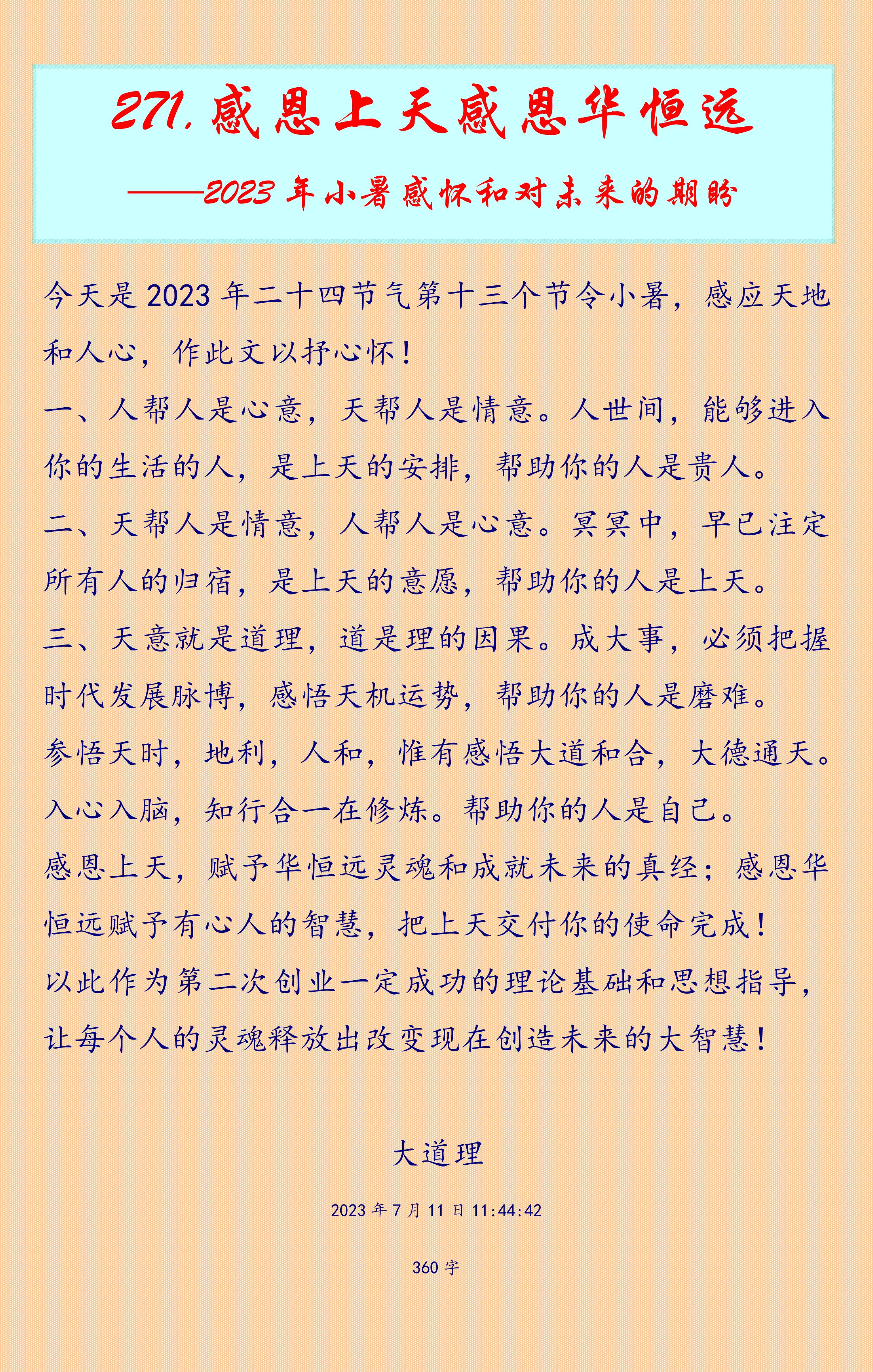 341.感恩上天感恩華恒遠(yuǎn)——2023年小暑感懷和對(duì)未來(lái)的期盼
