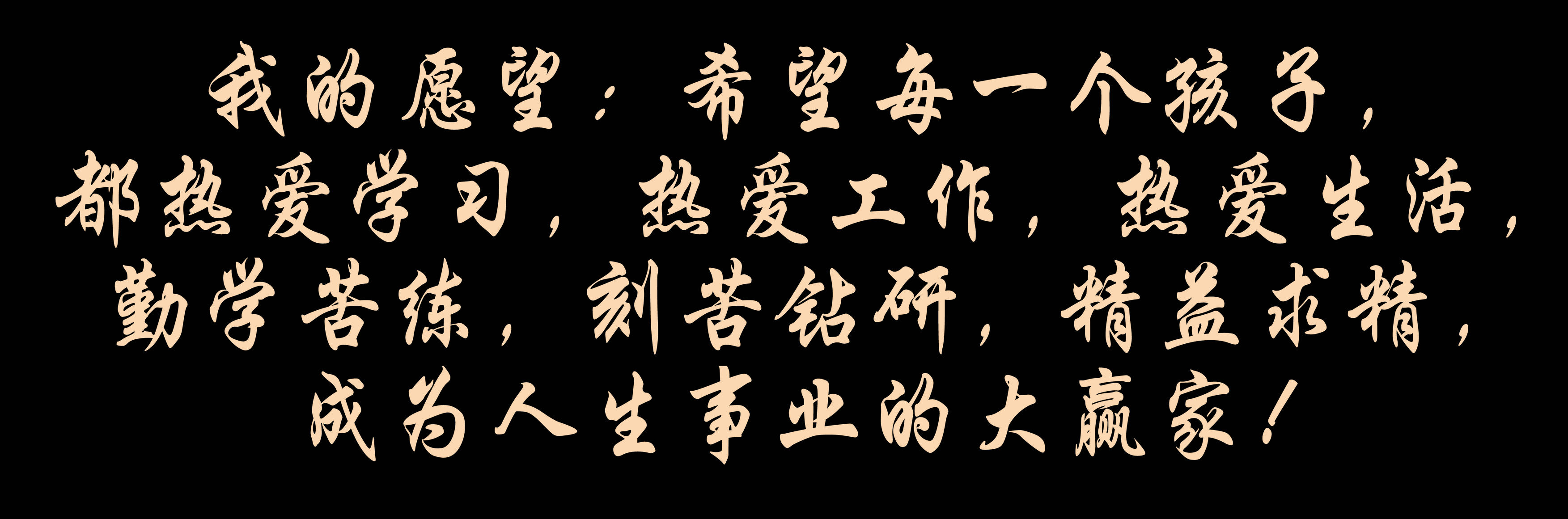 我的愿望:希望每一個孩子,都熱愛學習,熱愛工作,熱愛生活,勤學苦練,刻苦鉆研,精益求精,成為人生事業(yè)的大贏家!