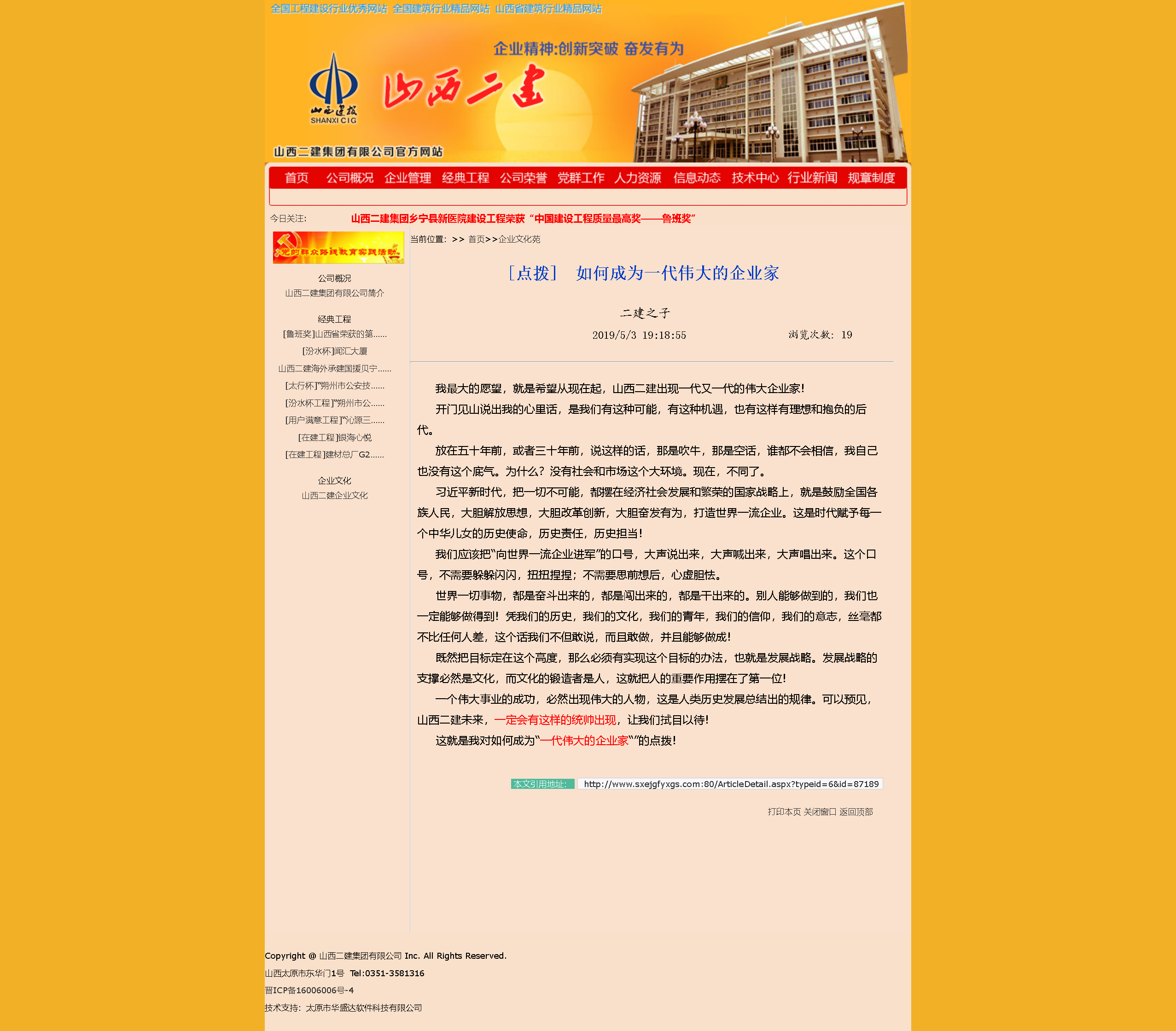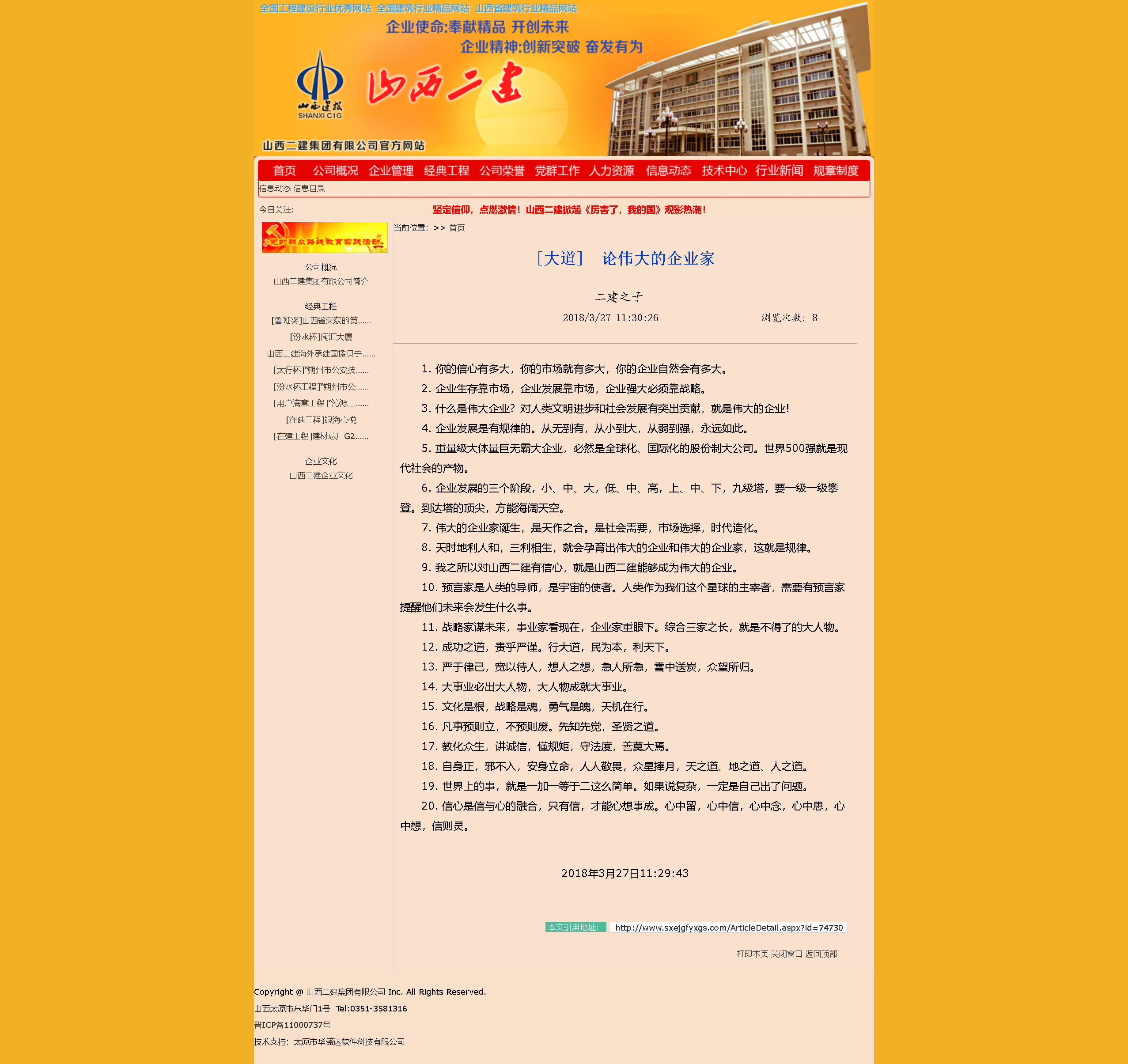 一個偉大事業(yè)的成功,必然出現(xiàn)偉大的人物,這是人類歷史的規(guī)律??梢灶A見,山西二建未來,一定會有這樣的統(tǒng)帥出現(xiàn),讓我們拭目以待!