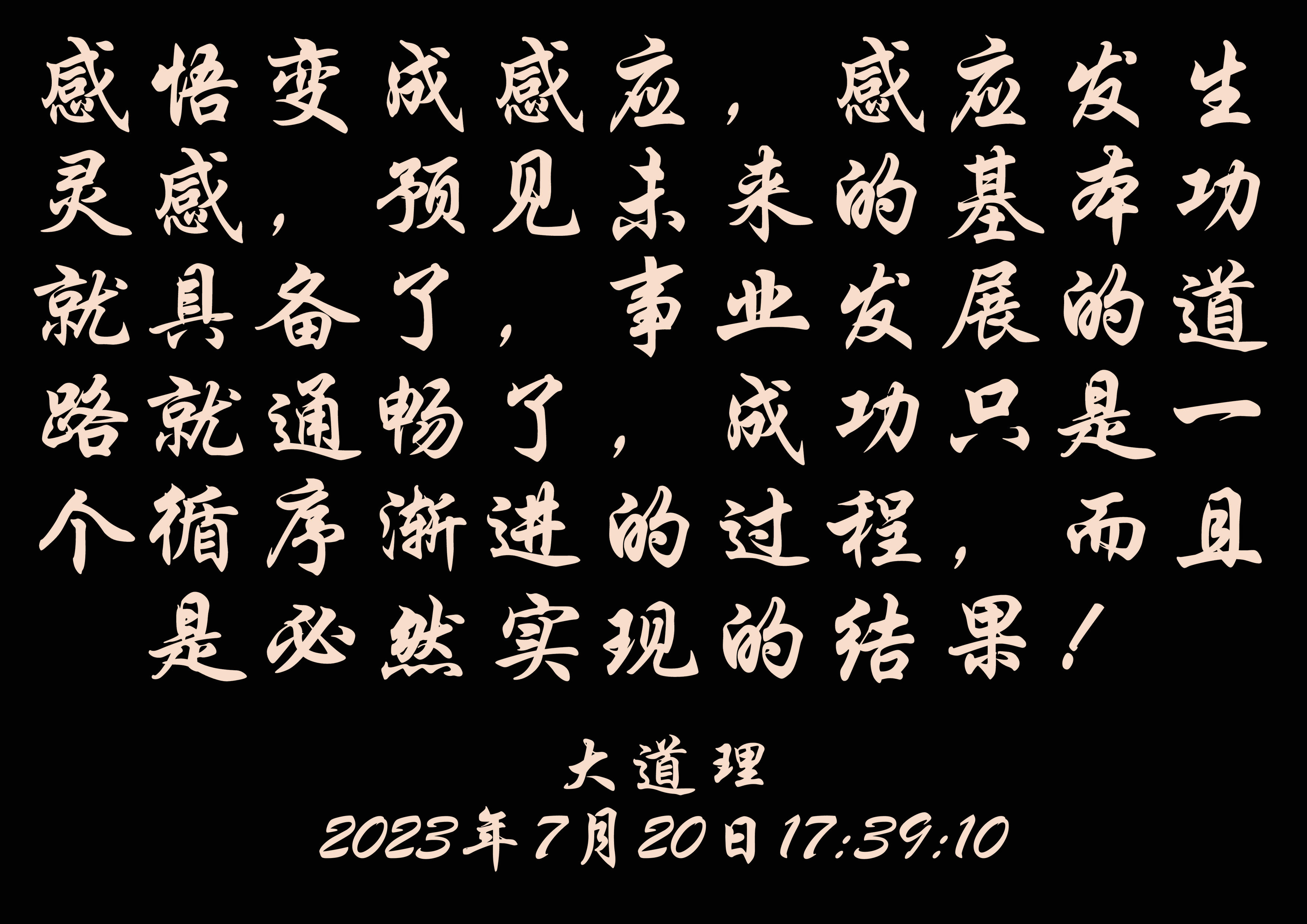 這就是中華文明和中華文化在新時代改變中國的第二個結(jié)合,國家如此,社會更是如此。懂得了這個道理,感悟變成感應,感應發(fā)生靈感,預見未來的基本功就具備了,事業(yè)發(fā)展的道路就通暢了,成功只是一個循序漸進的過程,而且是必然實現(xiàn)的結(jié)果!