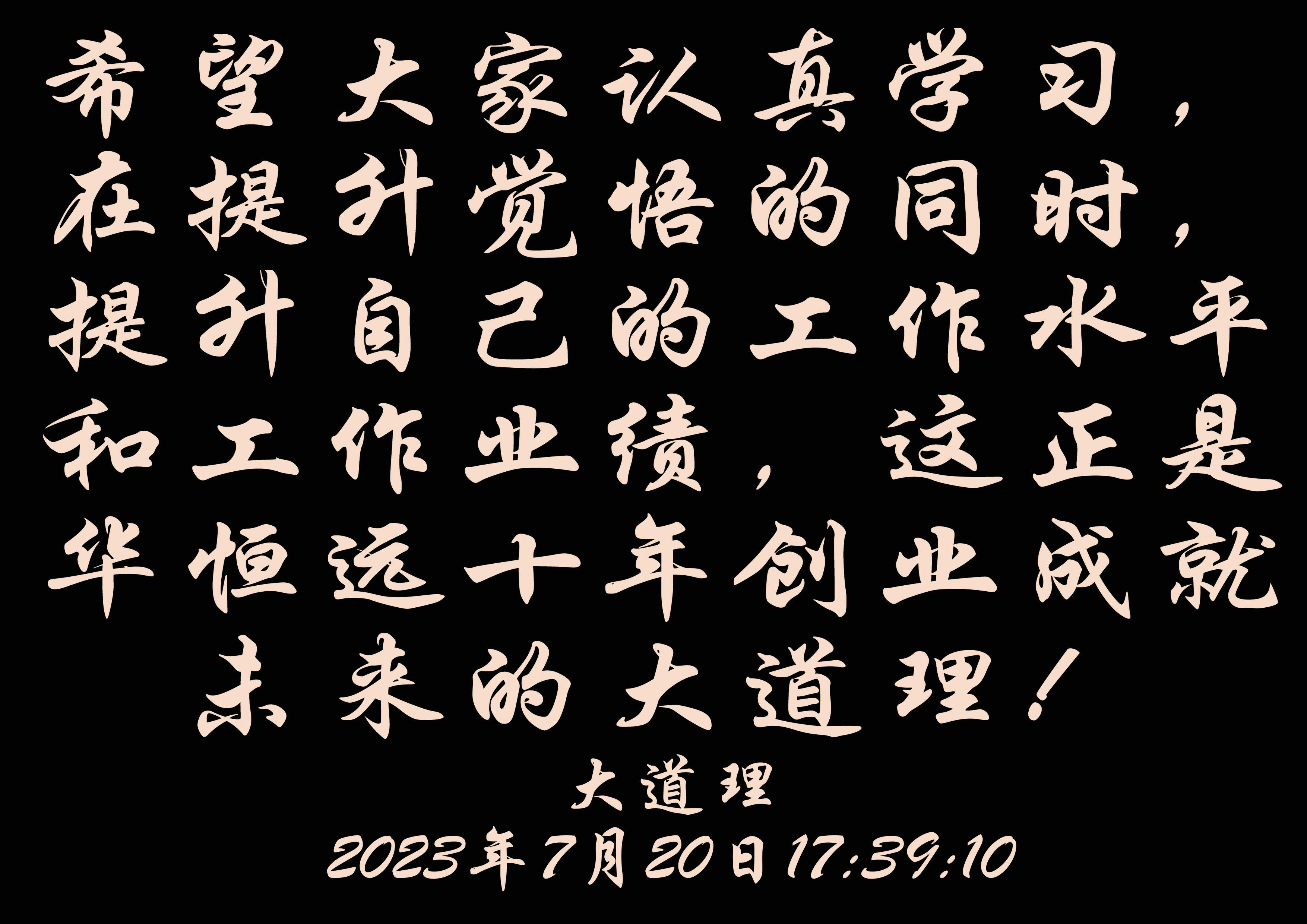 希望大家認真學習,在提升覺悟的同時,提升自己的工作水平和工作業(yè)績,這正是華恒遠十年創(chuàng)業(yè)成就未來的大道理!