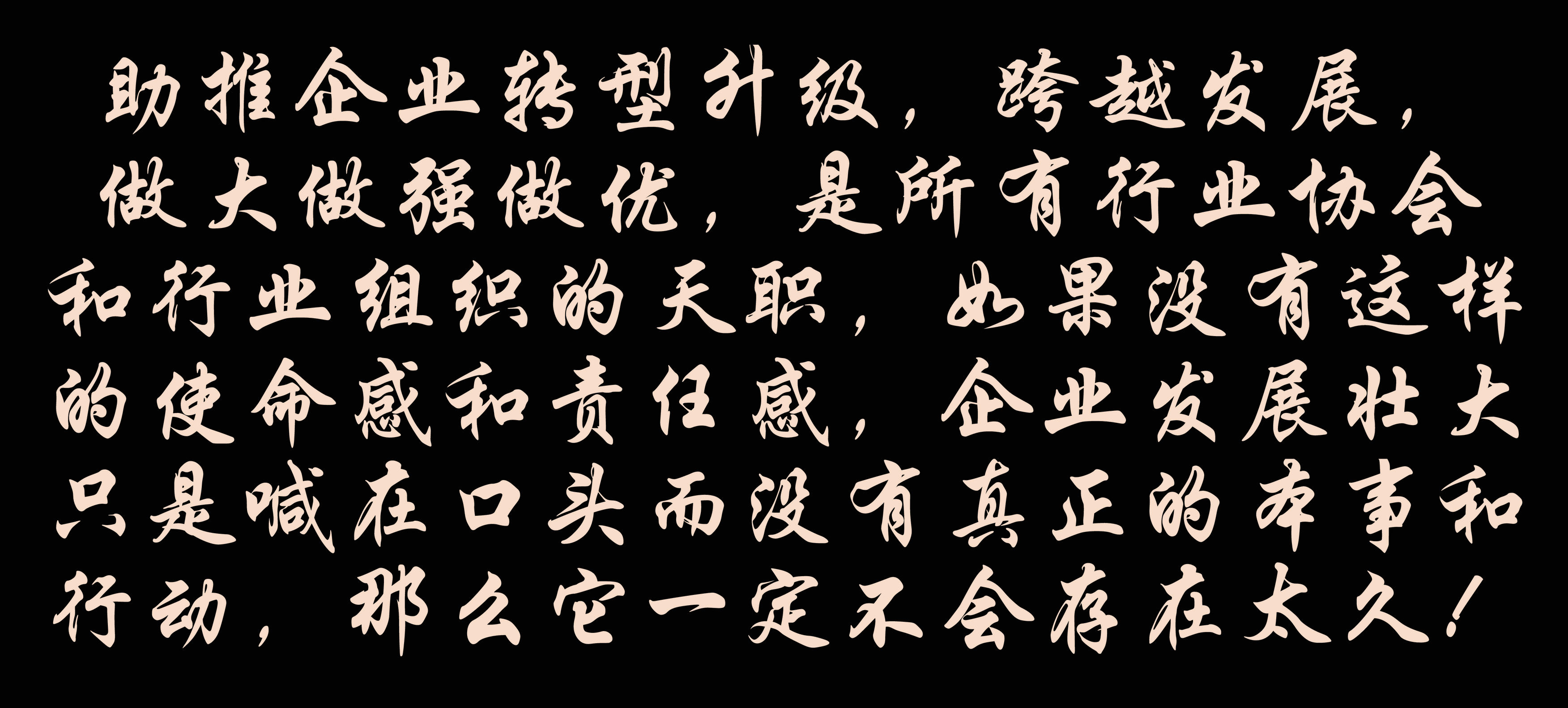 助推企業(yè)轉(zhuǎn)型升級(jí),跨越發(fā)展,做大做強(qiáng)做優(yōu),是所有行業(yè)協(xié)會(huì)和行業(yè)組織的天職,如果沒有這樣的使命感和責(zé)任感,企業(yè)發(fā)展壯大只是喊在口頭而沒有真正的本事和行動(dòng),那么它一定不會(huì)存在太久!