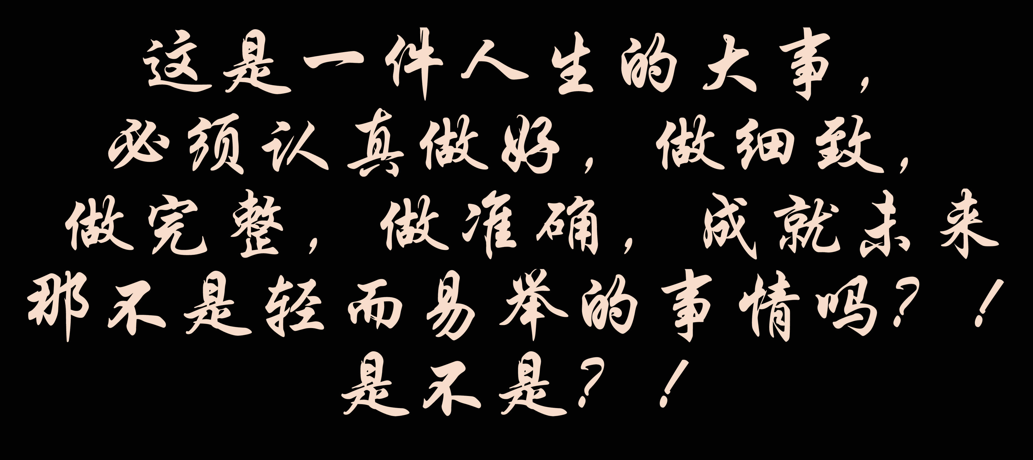 這是一件人生的大事,必須認(rèn)真做好,做細(xì)致,做完整,做準(zhǔn)確,成就未來那不是輕而易舉的事情嗎?!