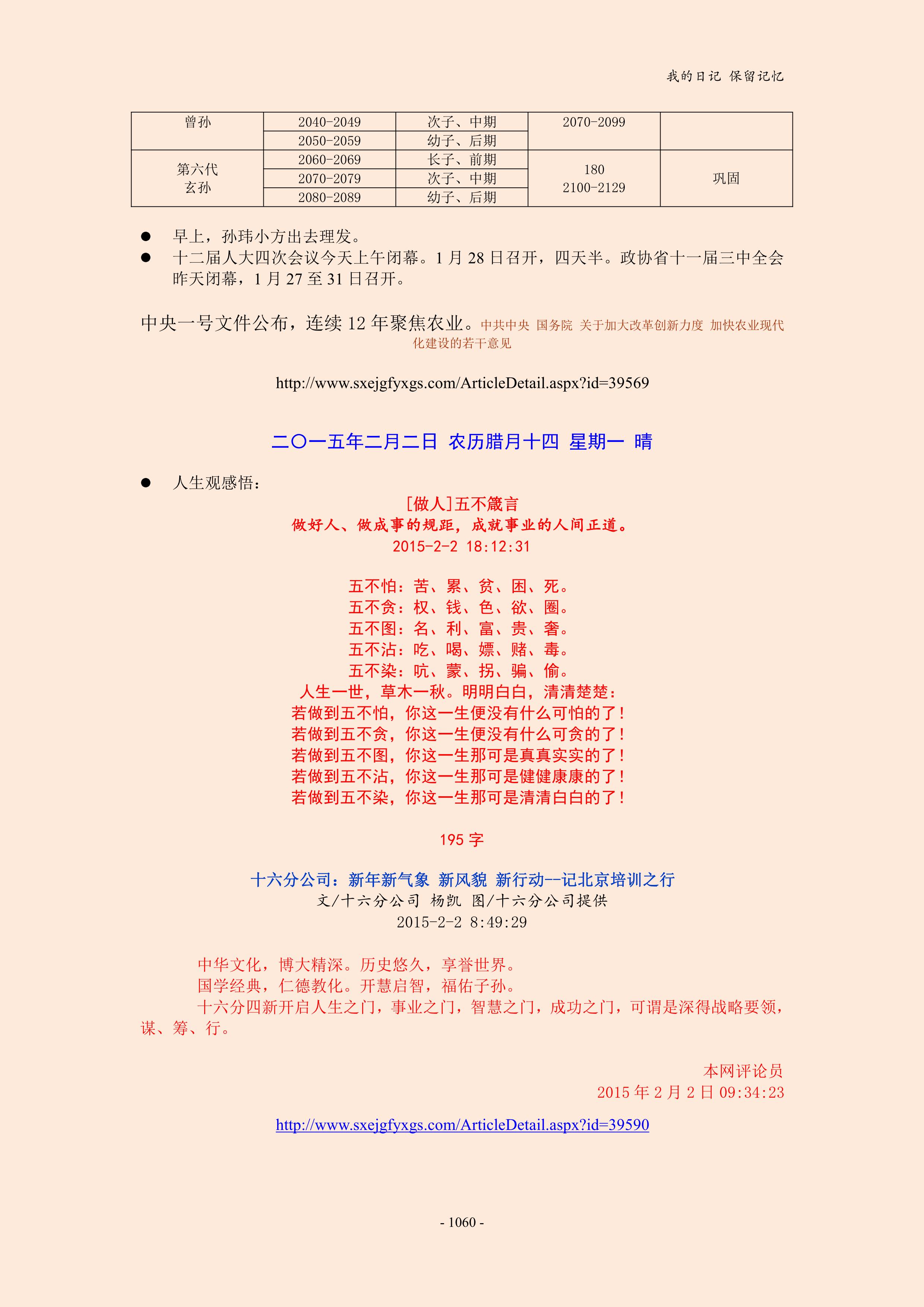 下面四頁《我的日記·保留記憶》,記錄了2015年1月31日至2月4日五天活動(dòng)的內(nèi)容。如果沒有日記,那就是記憶的空白了!