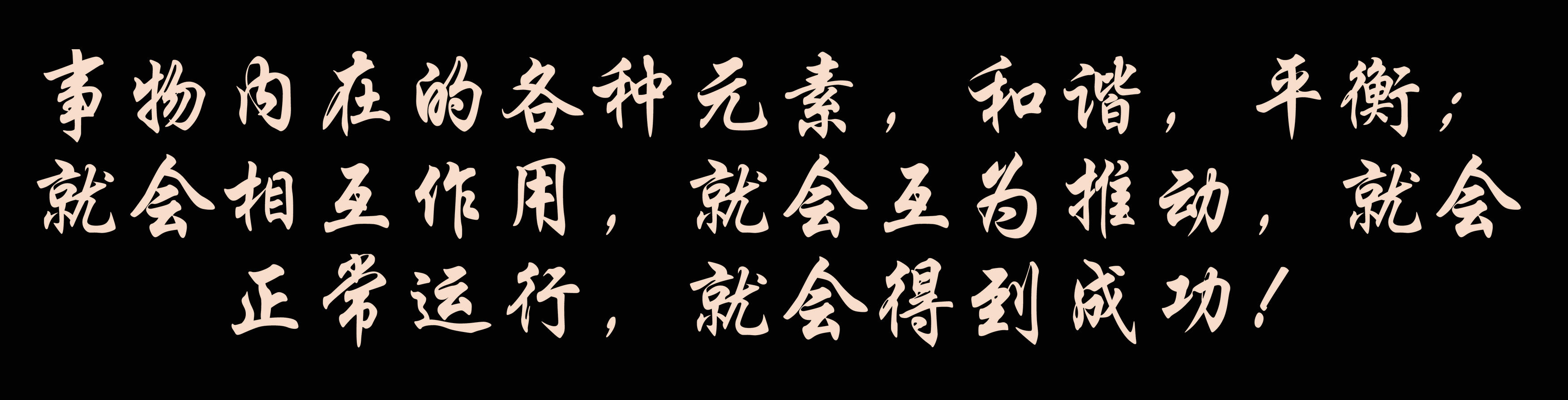 事物內(nèi)在的各種元素,和諧,平衡,就會相互作用,就會互為推動(dòng),就會正常運(yùn)行,就會得到成功!