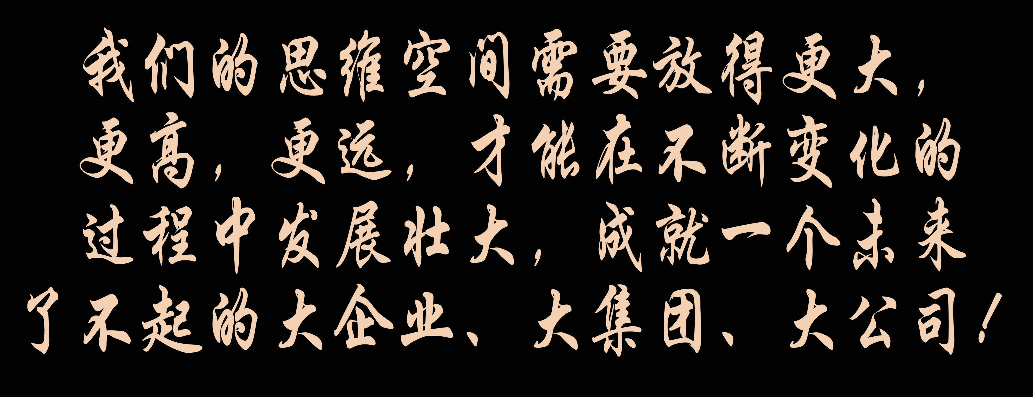 因此,我們的思維空間需要放得更大,更高,更遠(yuǎn),才能在不斷變化的過程中發(fā)展壯大,成就一個(gè)未來了不起的大企業(yè)、大集團(tuán)、大公司!