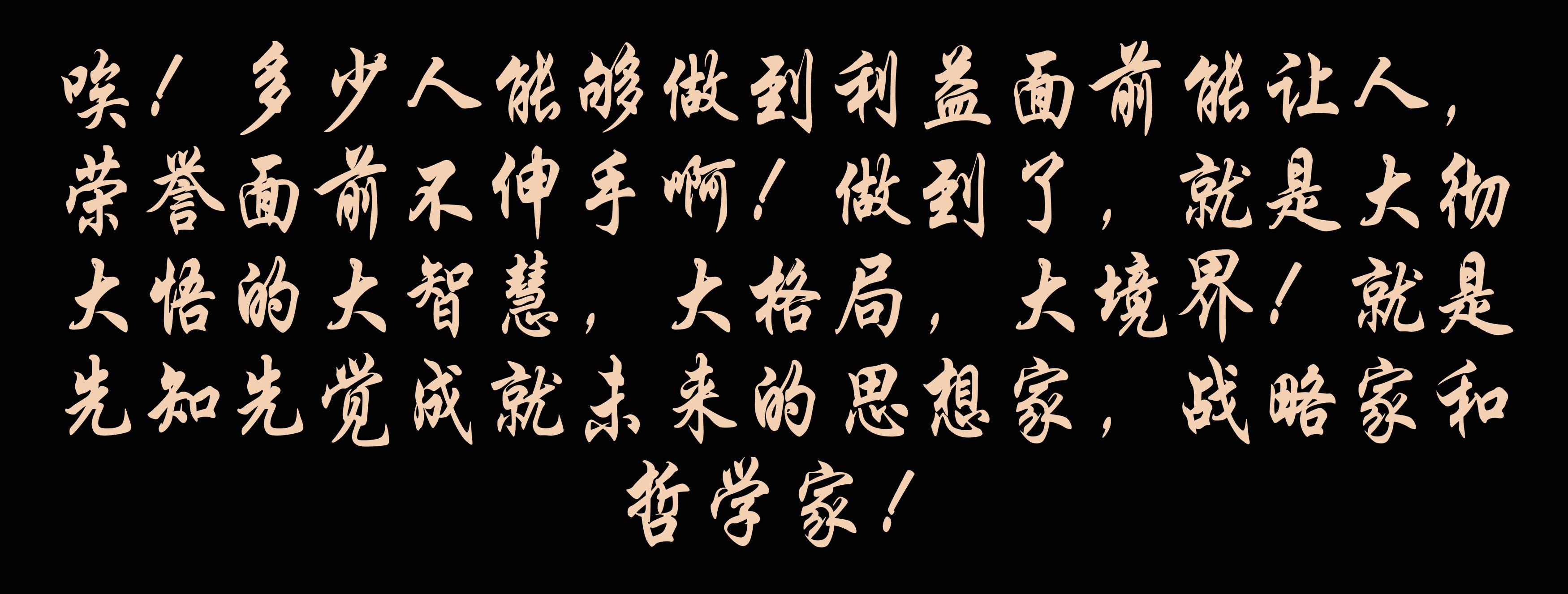 唉!多少人能夠做到利益面前能讓人,榮譽面前不伸手?。∽龅搅?,就是大徹大悟的大智慧,大格局,大境界!就是先知先覺成就未來的思想家,戰(zhàn)略家和哲學(xué)家!