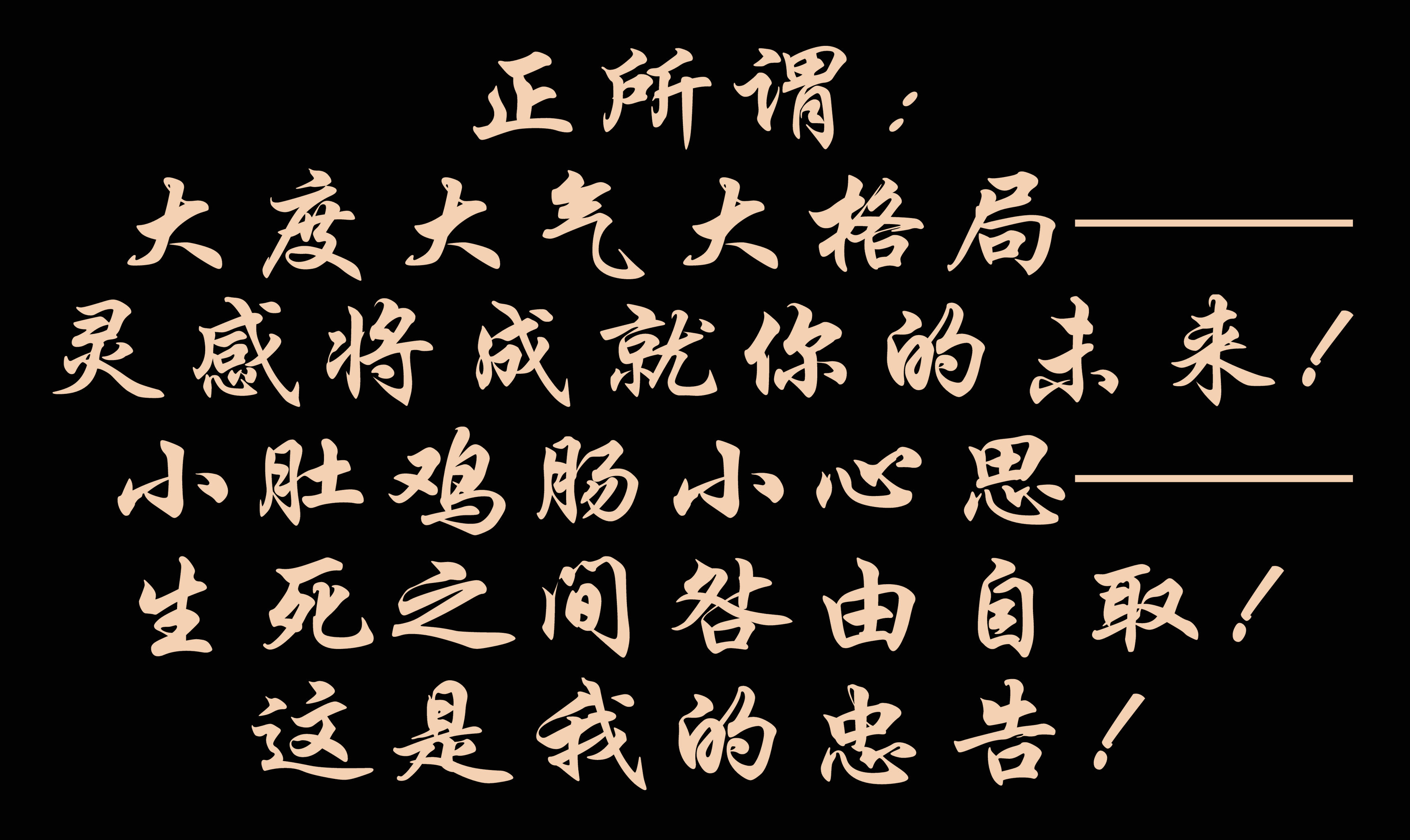 正所謂:大度大氣大格局——靈感將成就你的未來!小肚雞腸小心思——生死之間咎由自取!