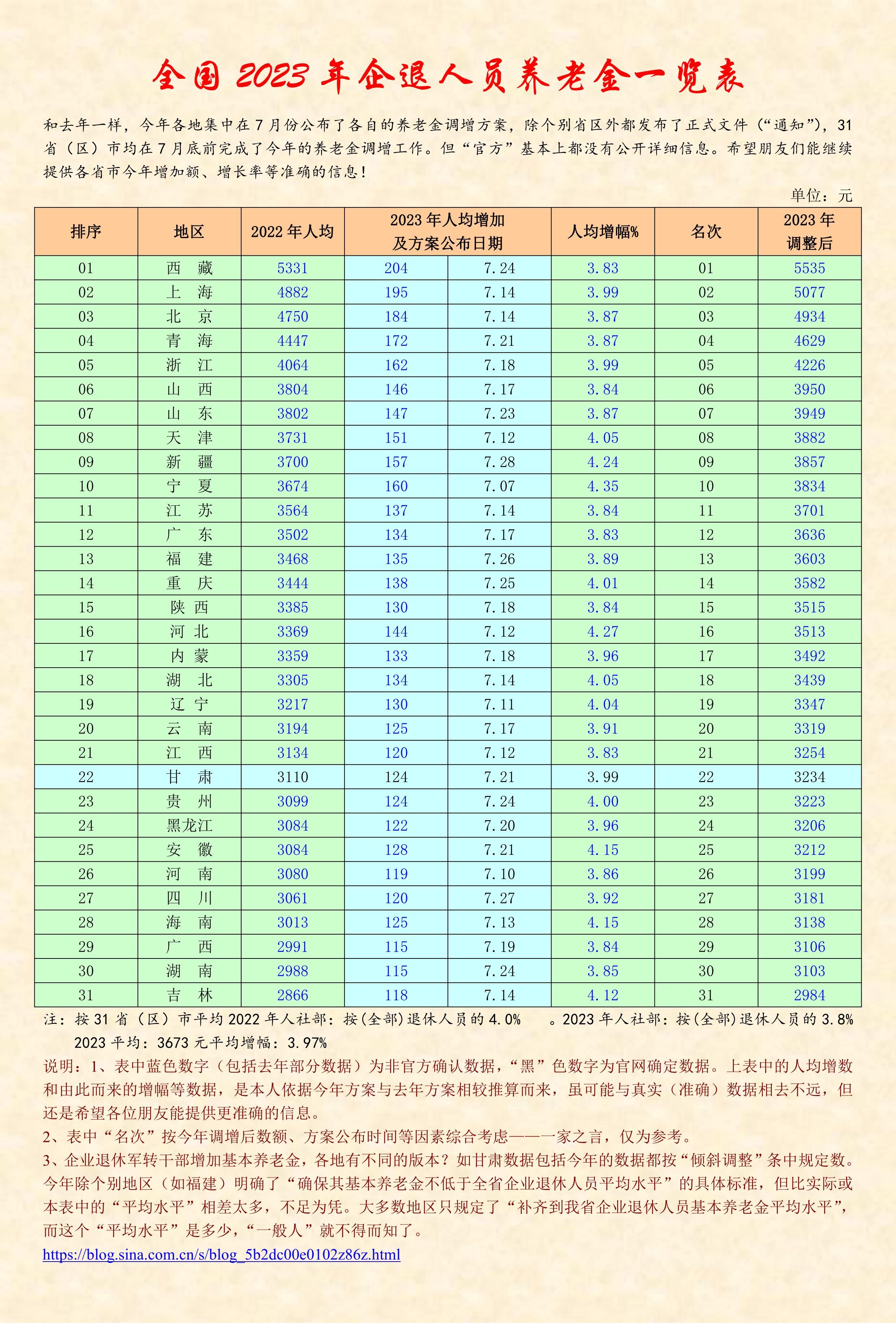 關(guān)注他的博客,已經(jīng)好多年,他每年不厭其煩做一件事情,讓我感動,那就是為全國企業(yè)退休的老人們服務(wù),提供當(dāng)年養(yǎng)老金信息的同時,編輯了比較和匯總,讓大家一看便知,心中有數(shù),各得其所!