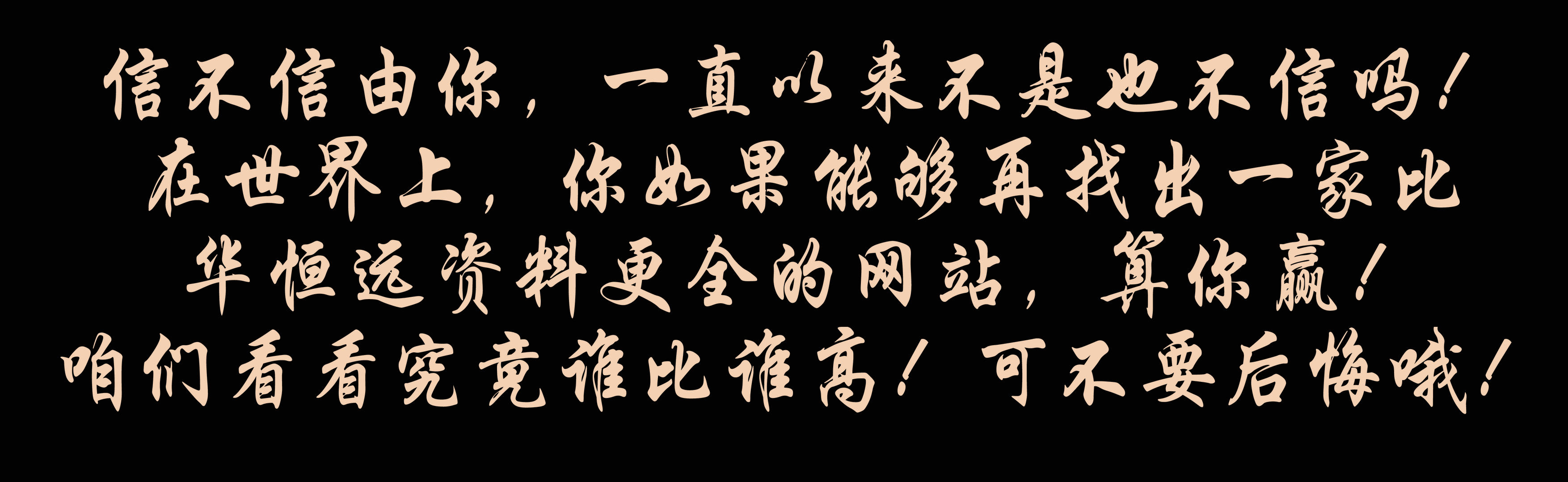 信不信由你,一直以來不是也不信嗎!在世界上,你如果能夠再找出一家比華恒遠(yuǎn)資料更全的網(wǎng)站,算你贏!