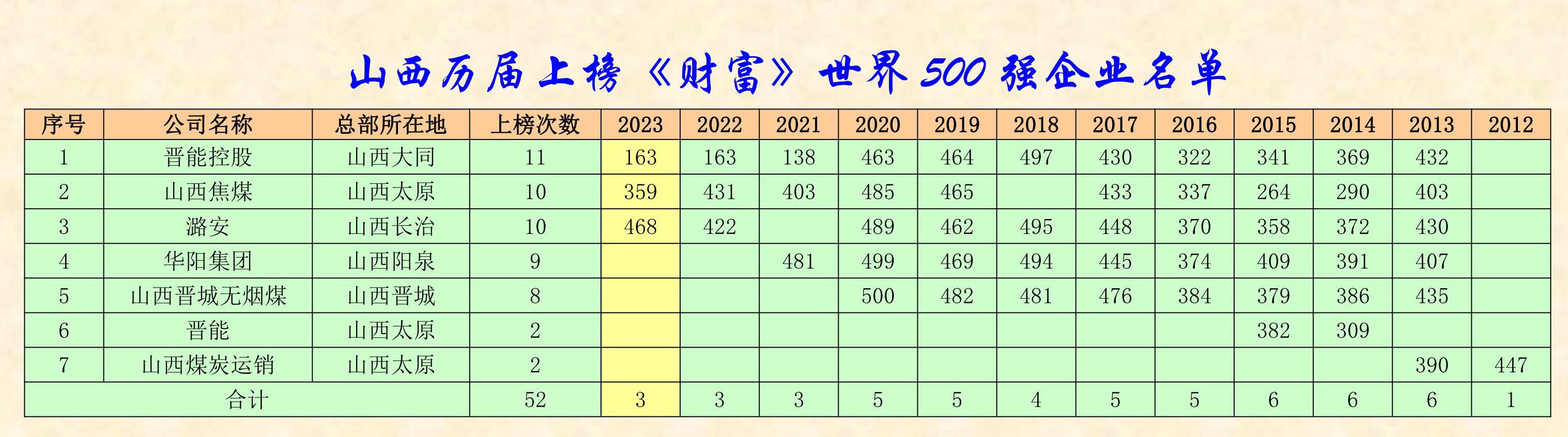 自2012年以來十二年中,上榜《財富》世界500強(qiáng)的山西7家企業(yè)是誰呢!全部是煤炭企業(yè)!