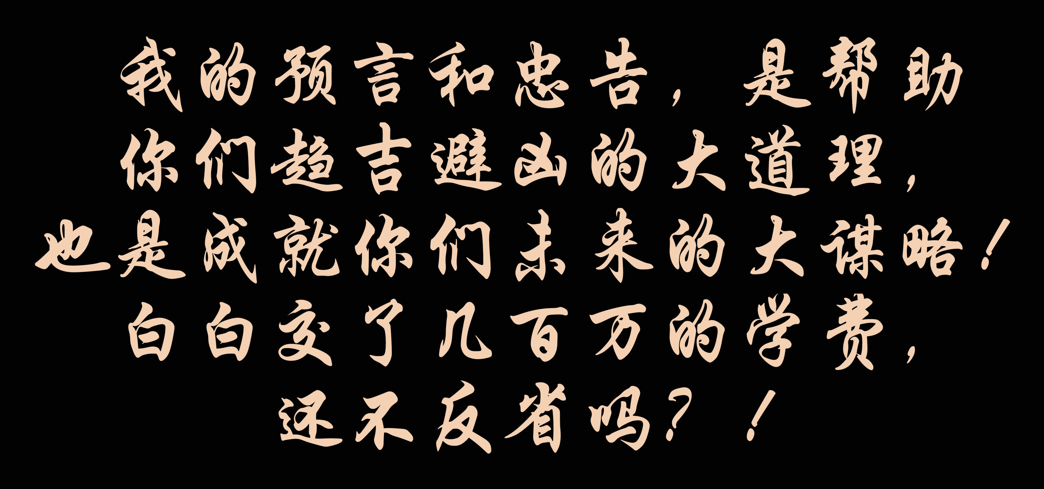 我的預(yù)言和忠告,是幫助你們趨吉避兇的大道理,也是成就你們未來的大謀略!