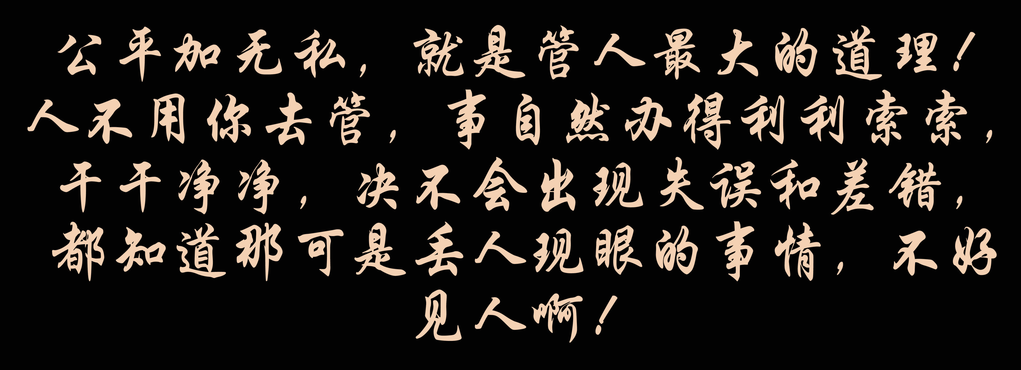公平加無私,就是管人最大的道理!人不用你去管,事自然辦得利利索索,干干凈凈,決不會出現(xiàn)失誤和差錯,都知道那可是丟人現(xiàn)眼的事情,不好見人啊!