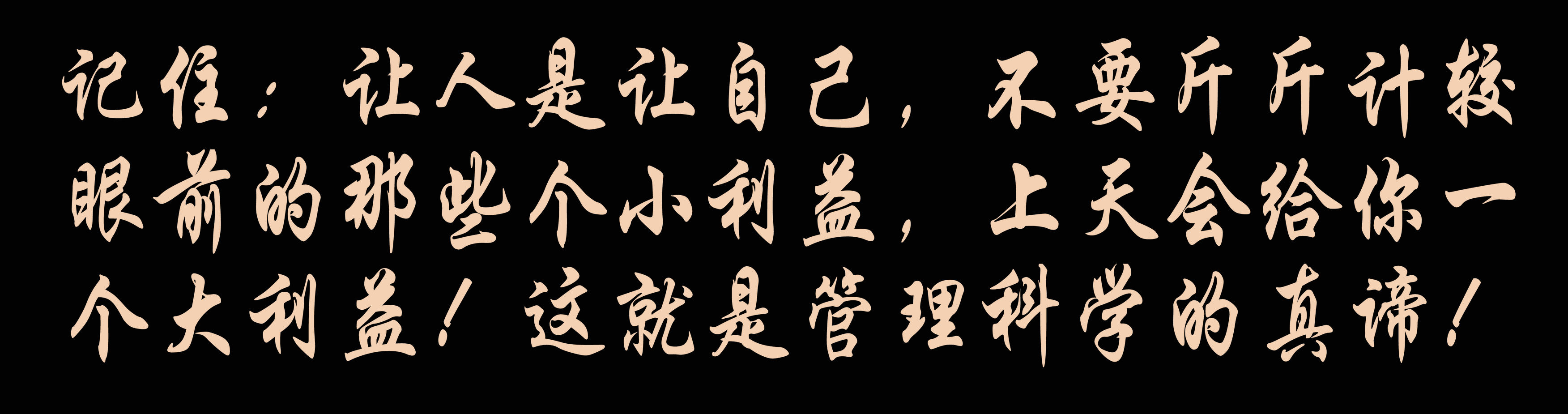之后的之后,多少年多少事,都是一如既往的順利和成就,把管理作為一門科學,就是關心人,體帖人,愛護人,幫助人,成就人!他想一,給他二,這就是大道大德的大道理!