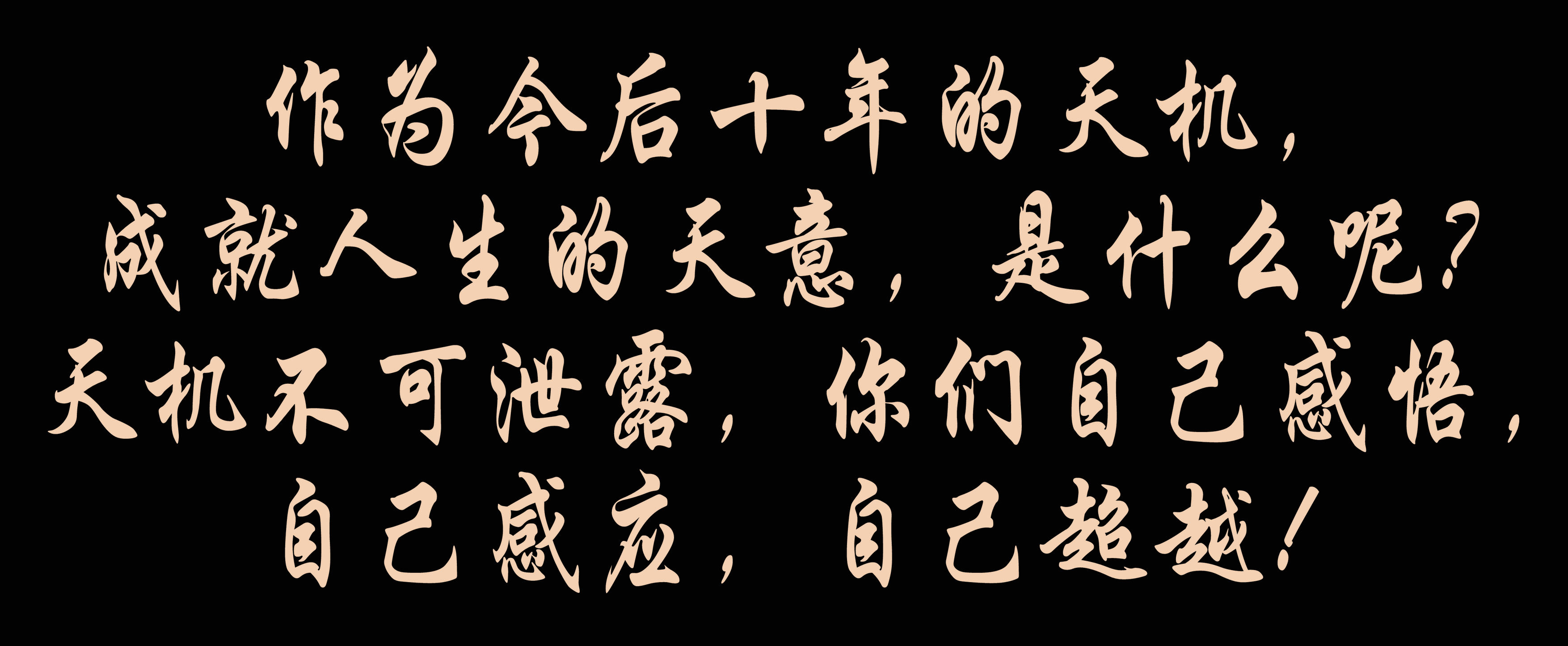 作為今后十年的天機(jī),成就人生的天意,是什么呢?天機(jī)不可泄露,你們自己感悟,自己感應(yīng),自己超越!