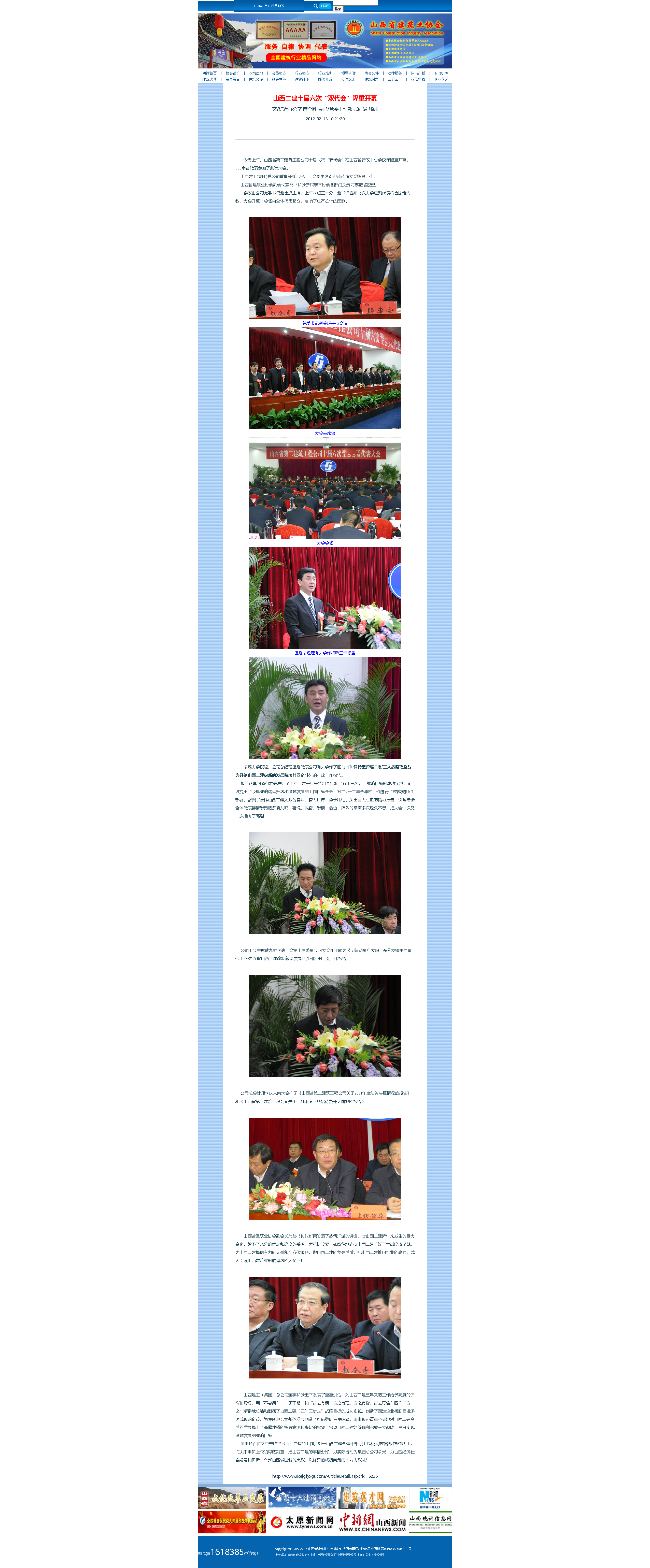 山西省第二建筑工程公司,從2011年1月15日的十屆五次職代會(huì)開始,用一年的時(shí)間,完成了向“山西二建集團(tuán)有限公司”的戰(zhàn)略轉(zhuǎn)型的思想準(zhǔn)備。2012年2月13日山西二建十屆六次職代會(huì)在省行政會(huì)議中心召開。應(yīng)山西二建邀請,協(xié)會(huì)張新民秘書長率各部門負(fù)責(zé)人參加大會(huì)。表示祝賀和支持。還邀請了廳市場處處長周翠芬。
