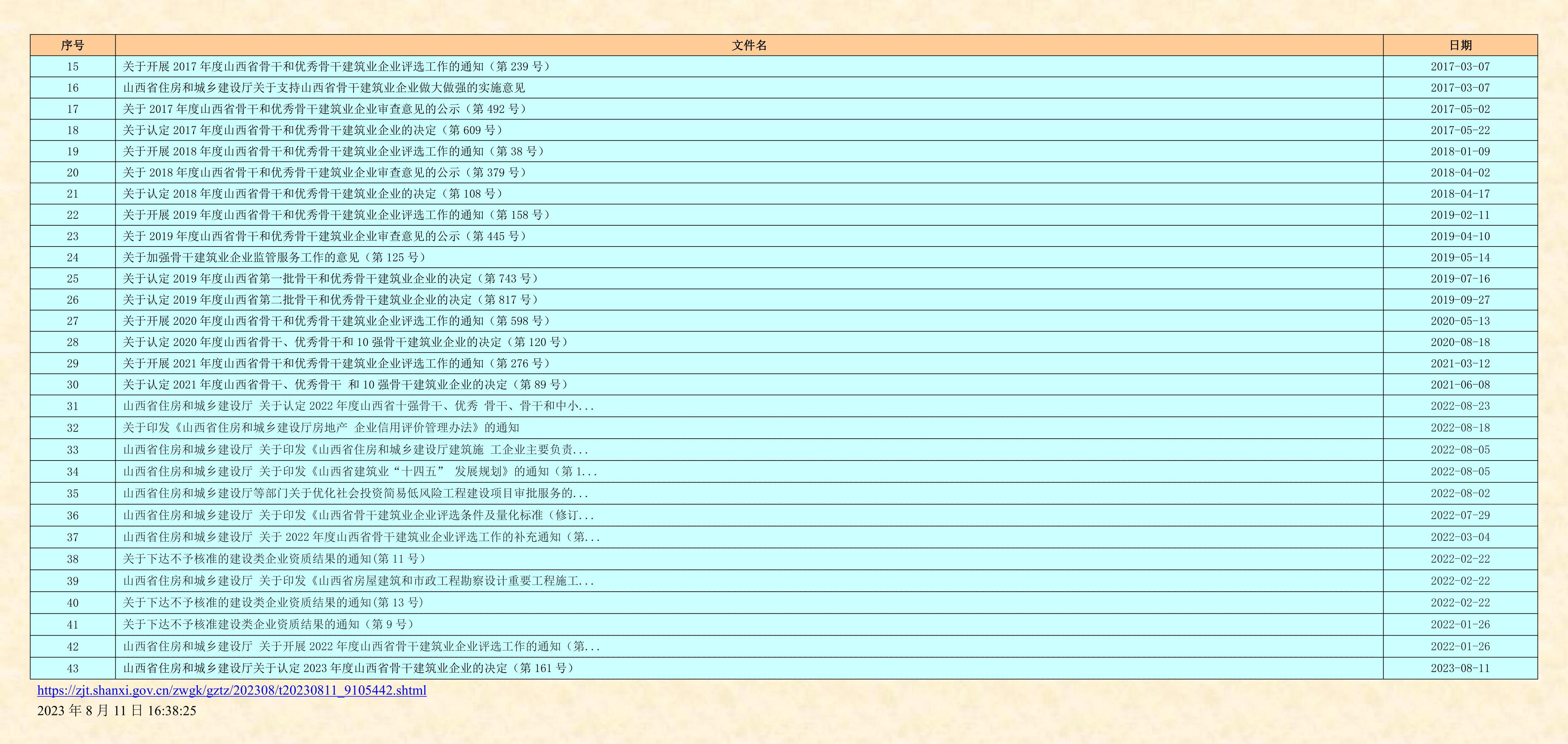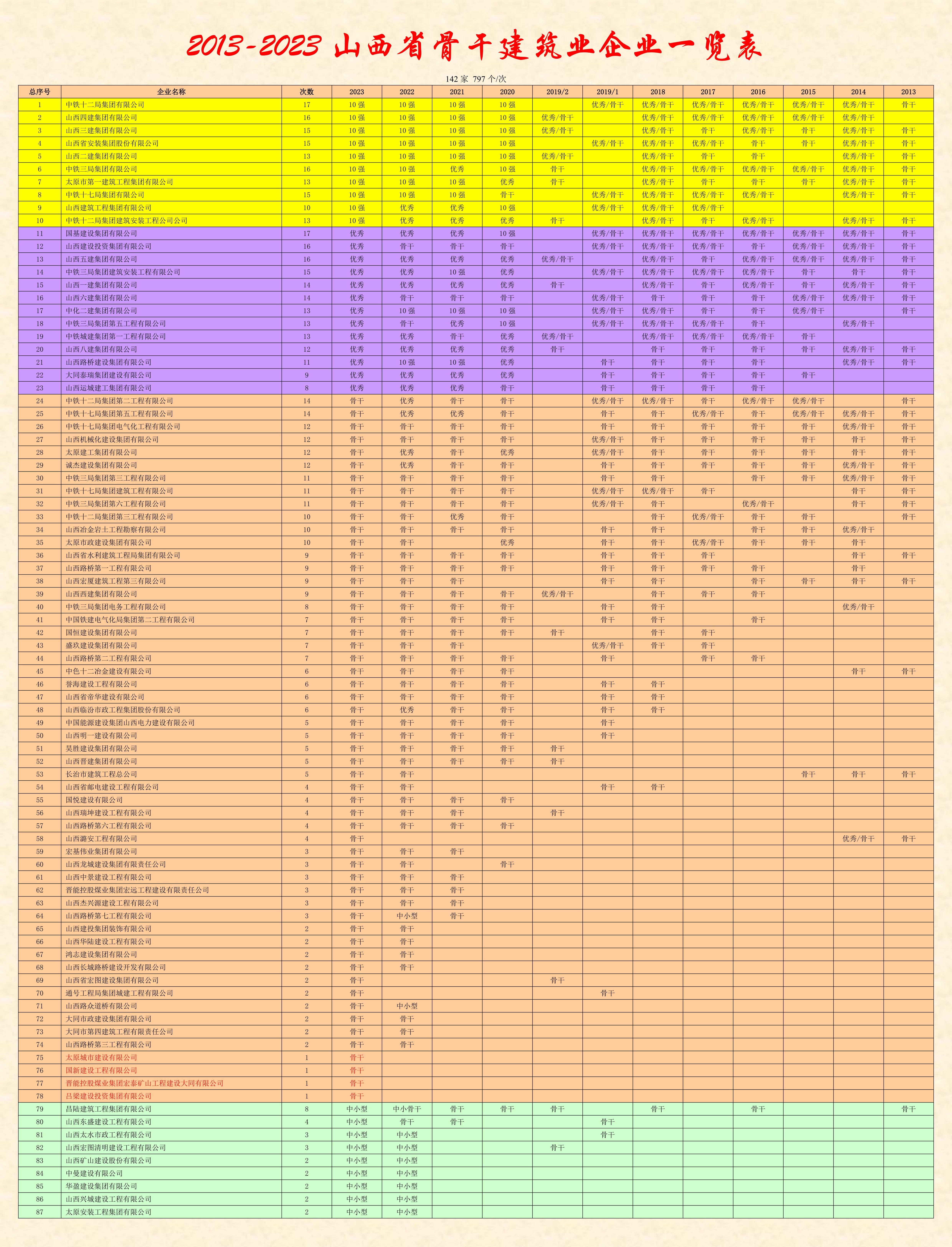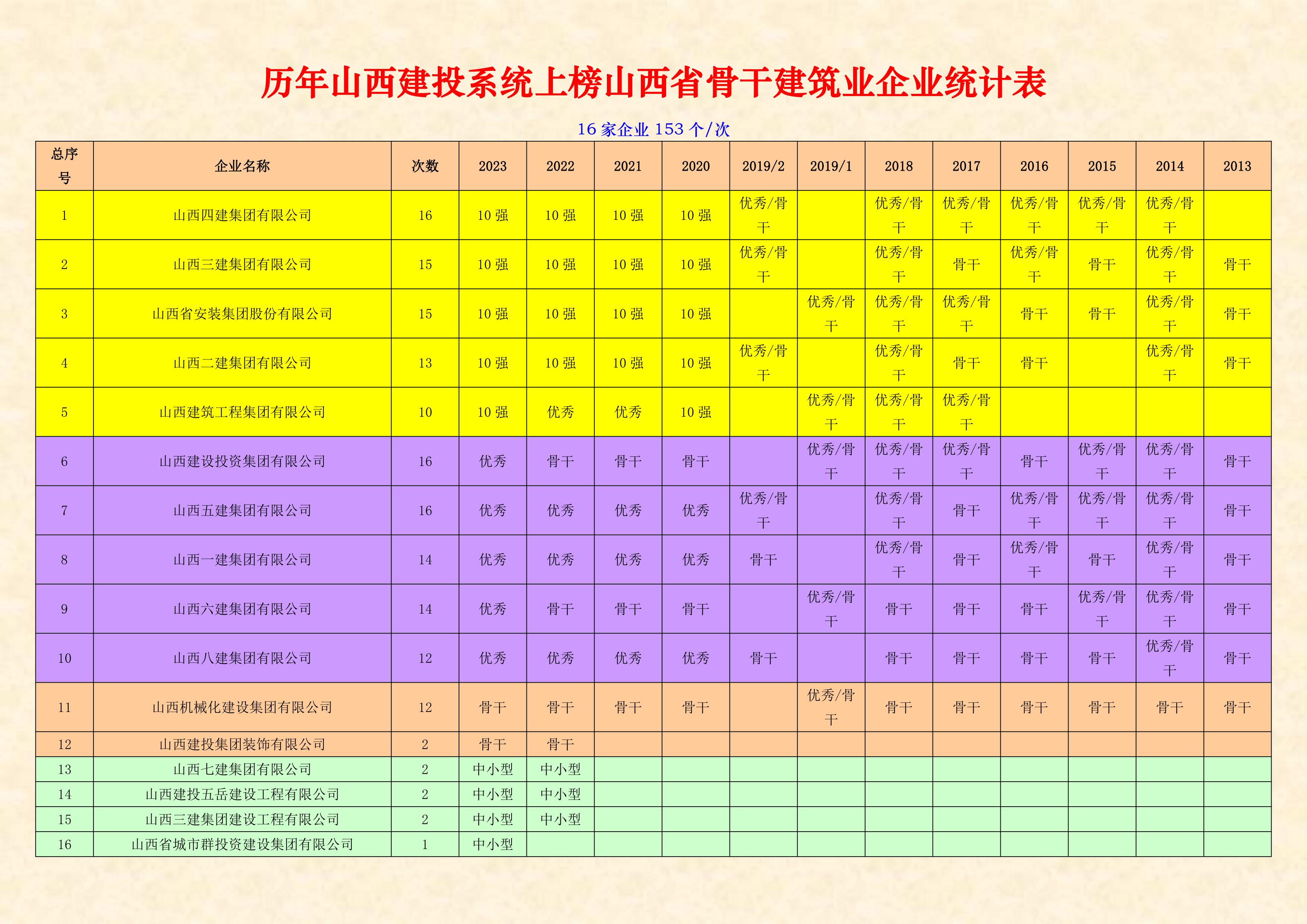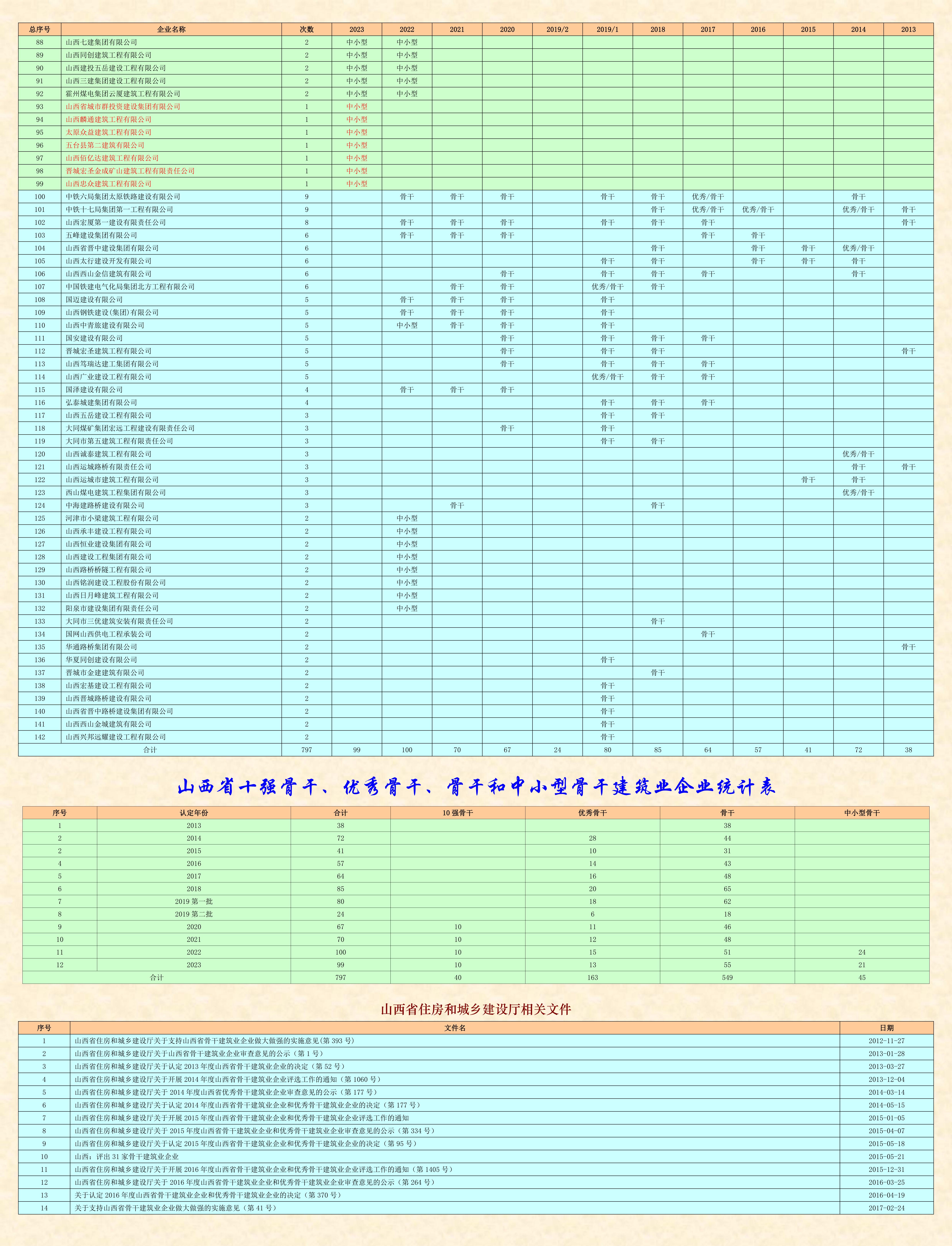 今天,省住建廳公布了2023年度山西省骨干建筑業(yè)企業(yè)名單。這是從2013年開始連續(xù)十一年第12次對全省建筑業(yè)企業(yè)的又一次檢驗和認(rèn)定!