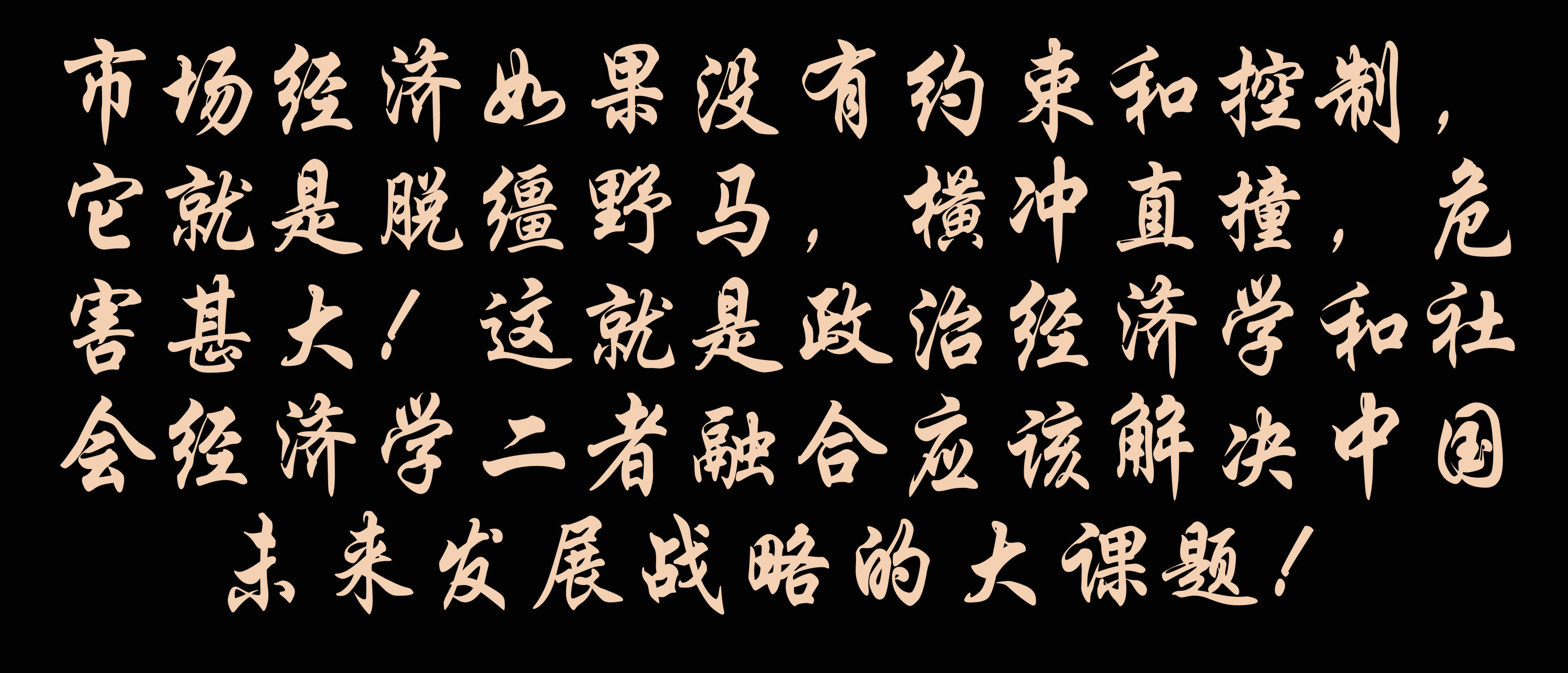 市場經(jīng)濟(jì)如果沒有約束和控制,它就是脫韁野馬,橫沖直撞,危害甚大!這就是政治經(jīng)濟(jì)學(xué)和社會(huì)經(jīng)濟(jì)學(xué)二者融合應(yīng)該解決中國發(fā)展戰(zhàn)略的大課題!