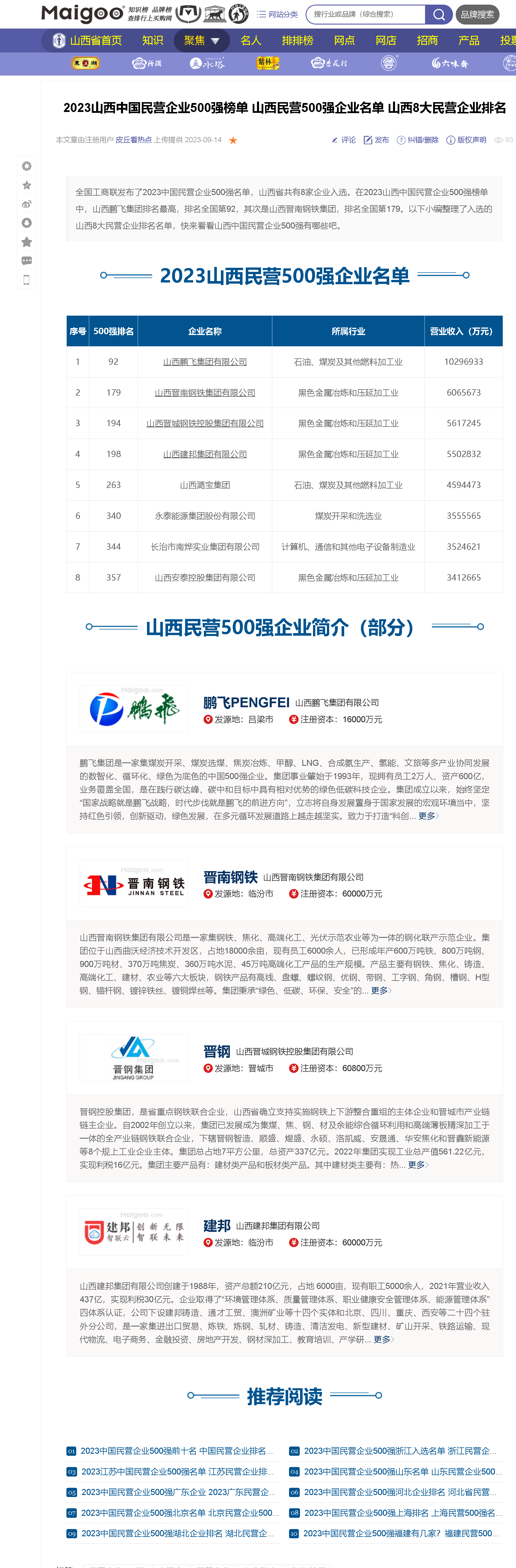【行業(yè)動態(tài)】山西8家民企入圍2023中國民營企業(yè)500強(qiáng)