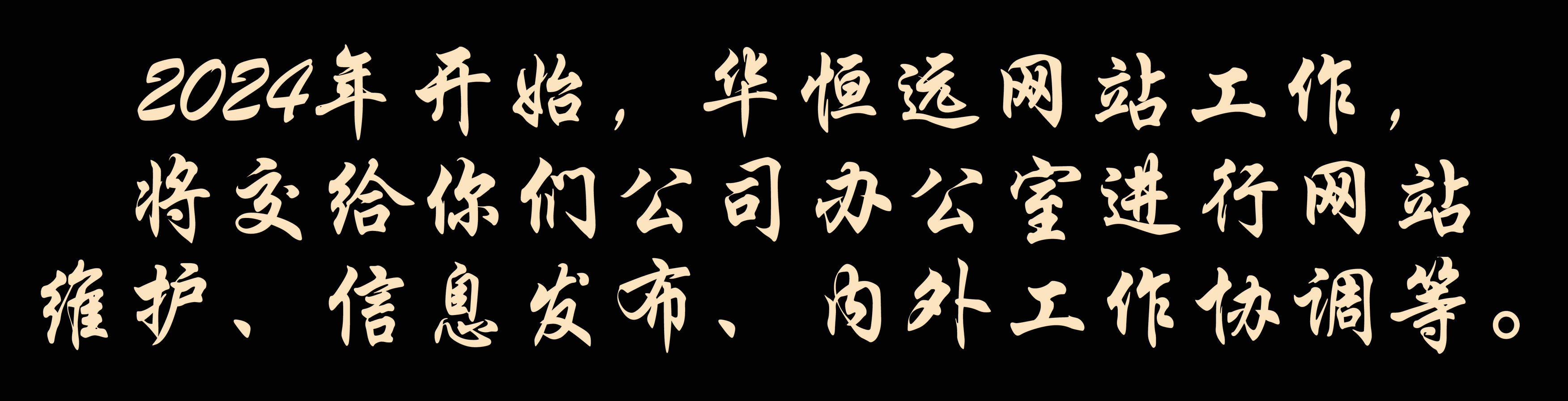 提前打個招呼,2024年開始,華恒遠(yuǎn)網(wǎng)站工作,將交給你們公司辦公室進(jìn)行網(wǎng)站維護(hù)、信息發(fā)布、內(nèi)外工作協(xié)調(diào)等。