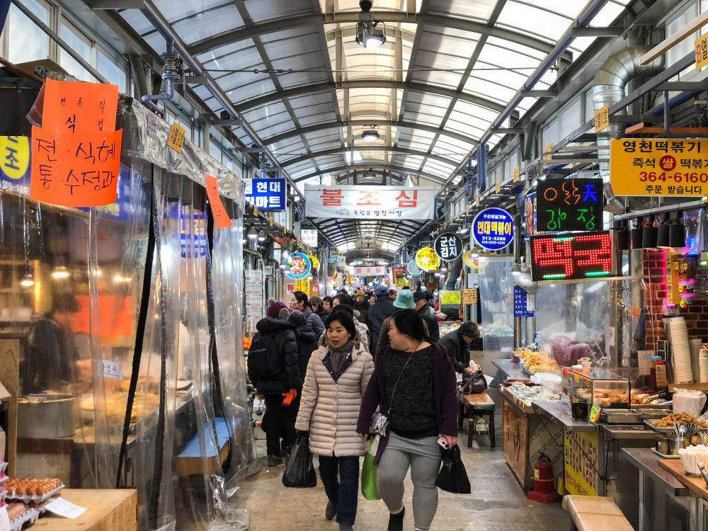 人們?cè)陧n國(guó)首爾的靈泉傳統(tǒng)市場(chǎng)購(gòu)買(mǎi)年貨。新華社記者王婧嬙攝