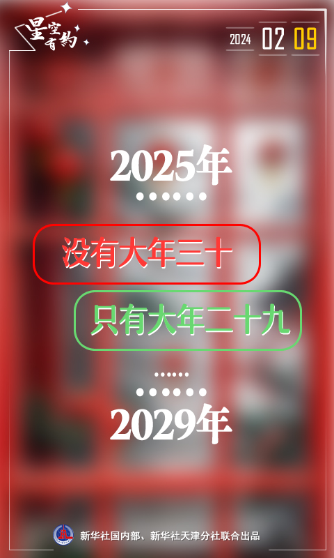 新華社天津1月13日電(記者周潤健)近日一則“未來5年都沒有大年三十”的消息引發(fā)公眾關(guān)注。消息稱,2024年2月9日是近年來最后一個大年三十,因為從2025年起至2029年都沒有大年三十,只有大年二十九。天文科普專家表示,大年三十時有時無是正常歷法現(xiàn)象,系農(nóng)歷大小月所致。