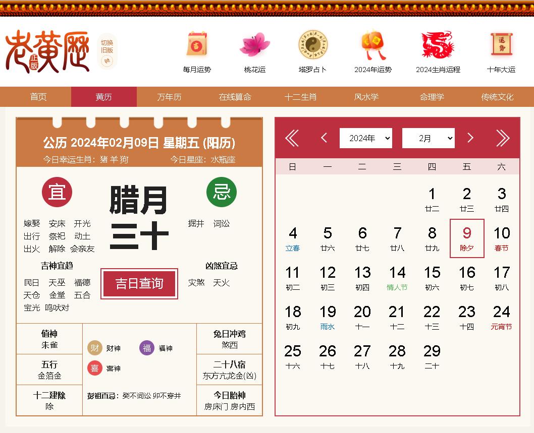 以農(nóng)歷癸卯兔年的農(nóng)歷十一月和臘月為例,農(nóng)歷十一月初一(公歷2023年12月13日)到臘月初一(公歷2024年1月11日)之間為29天;臘月初一至農(nóng)歷甲辰龍年的正月初一(公歷2024年2月10日)之間為30天。