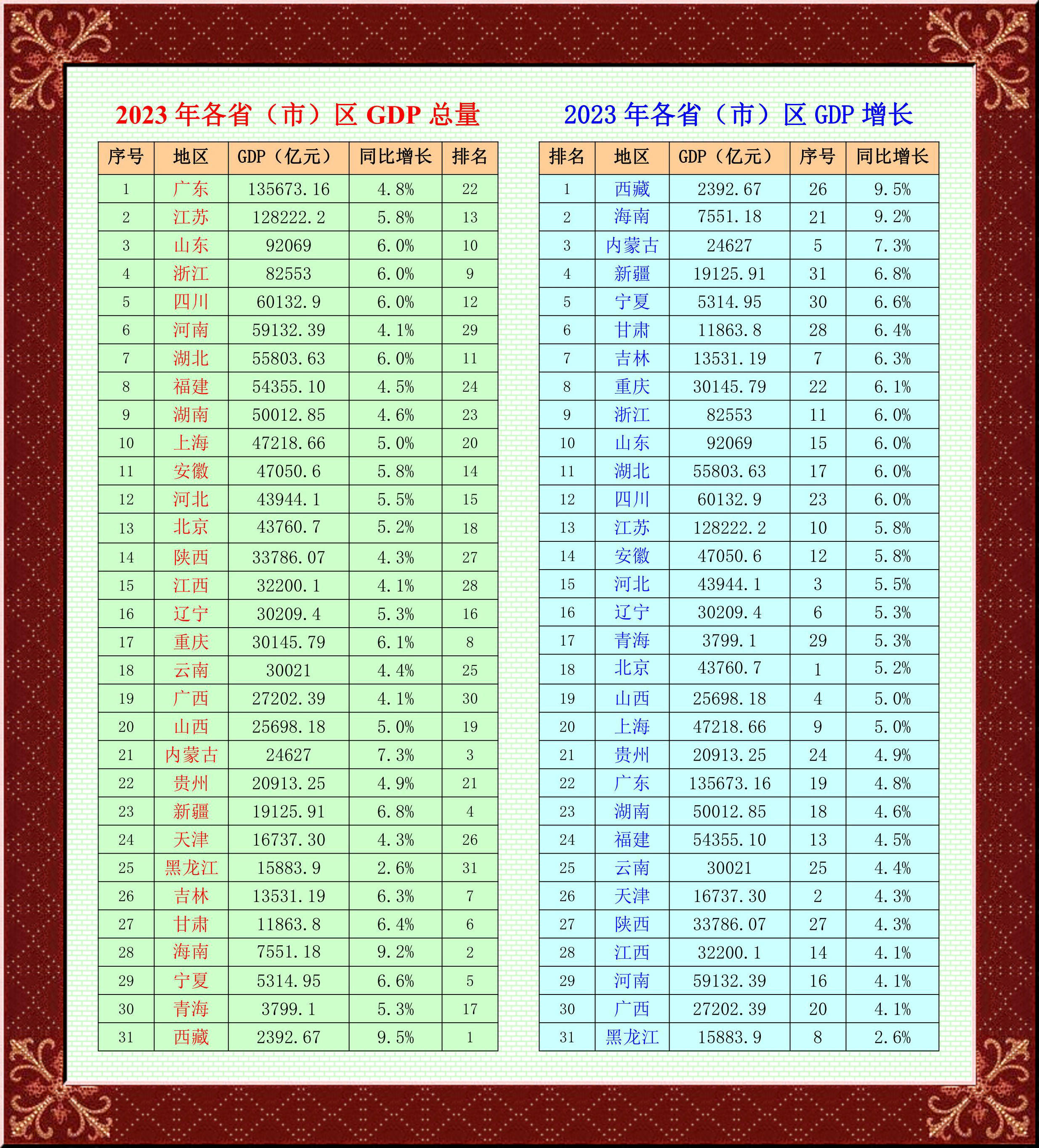 【綜合信息】31省份2023年GDP數(shù)據(jù)出爐 多省經(jīng)濟(jì)總量實(shí)現(xiàn)重要跨越