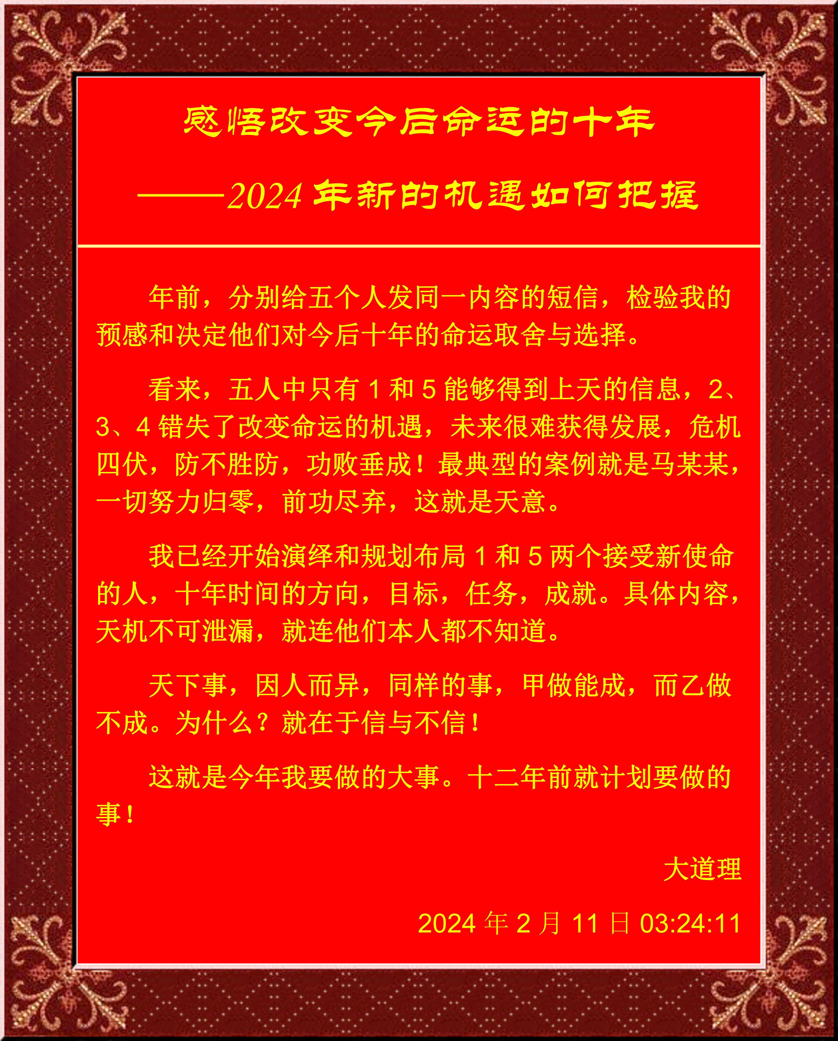 年前,分別給五個人發(fā)同一內(nèi)容的短信,檢驗我的預(yù)感和決定他們對今后十年的命運取舍與選擇。