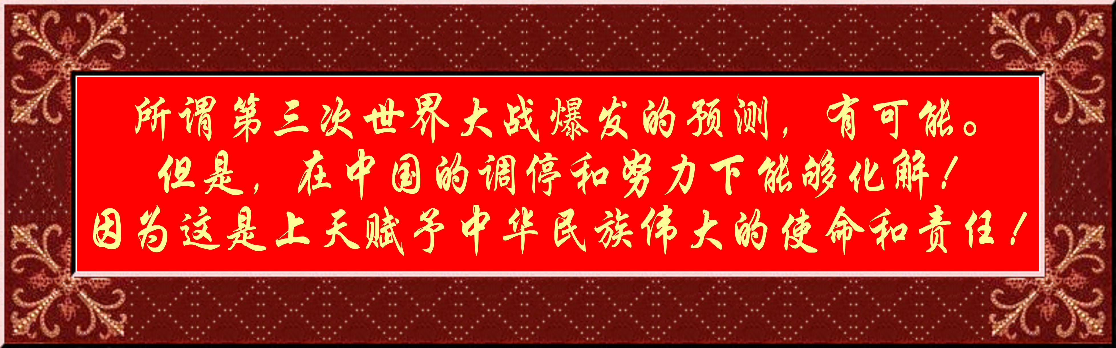 所謂第三次世界大戰(zhàn)爆發(fā)的預(yù)測,有可能。但是,在中國的調(diào)停和努力下能夠化解!
