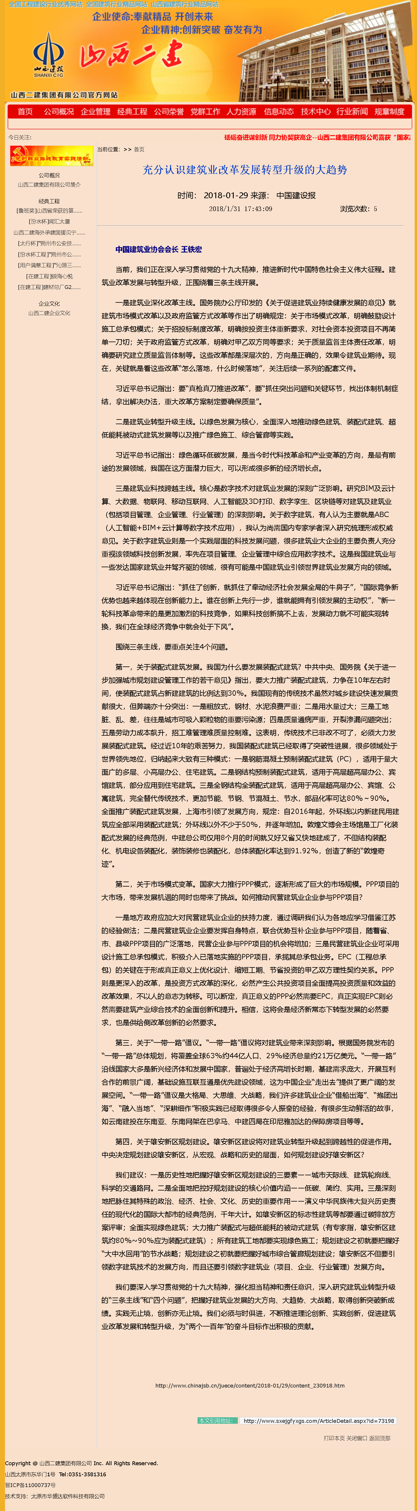 當(dāng)前,我們正在深入學(xué)習(xí)貫徹黨的十九大精神,推進(jìn)新時(shí)代中國特色社會(huì)主義偉大征程。建筑業(yè)改革發(fā)展與轉(zhuǎn)型升級,正圍繞著三條主線開展。