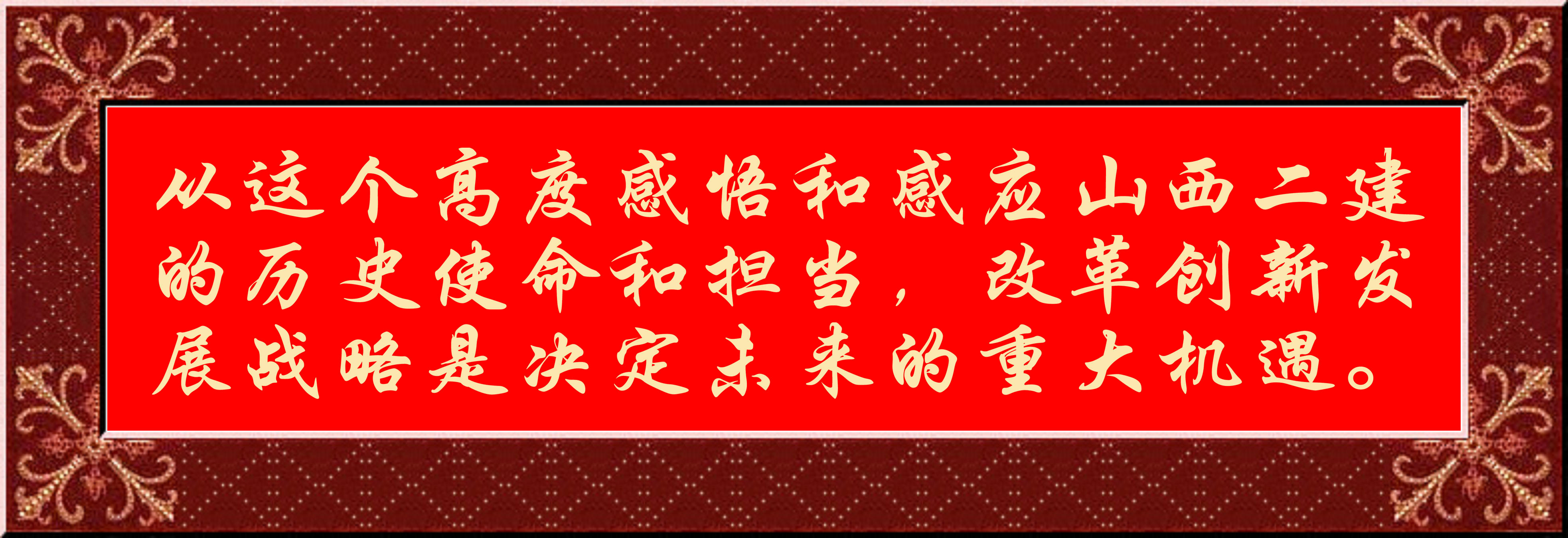 從三個新奇跡的高度感悟和感應山西二建當前和未來的歷史使命和擔當,改革創(chuàng)新發(fā)展戰(zhàn)略是決定未來成就的必由之路和重大機遇。今后二十五年是關鍵!是對每一位接棒新掌門人提出的歷史問卷,如何破題?如何超越?如何創(chuàng)造新的奇跡?!