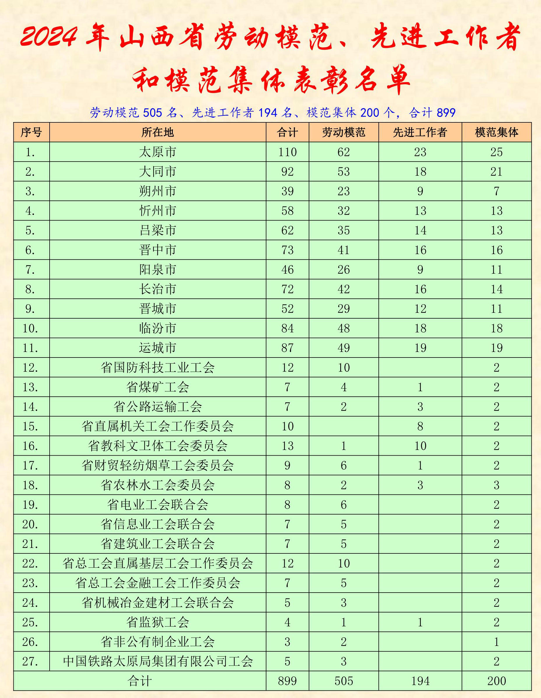 2024年山西省勞動(dòng)模范、先進(jìn)工作者和模范集體擬表彰對象公示
