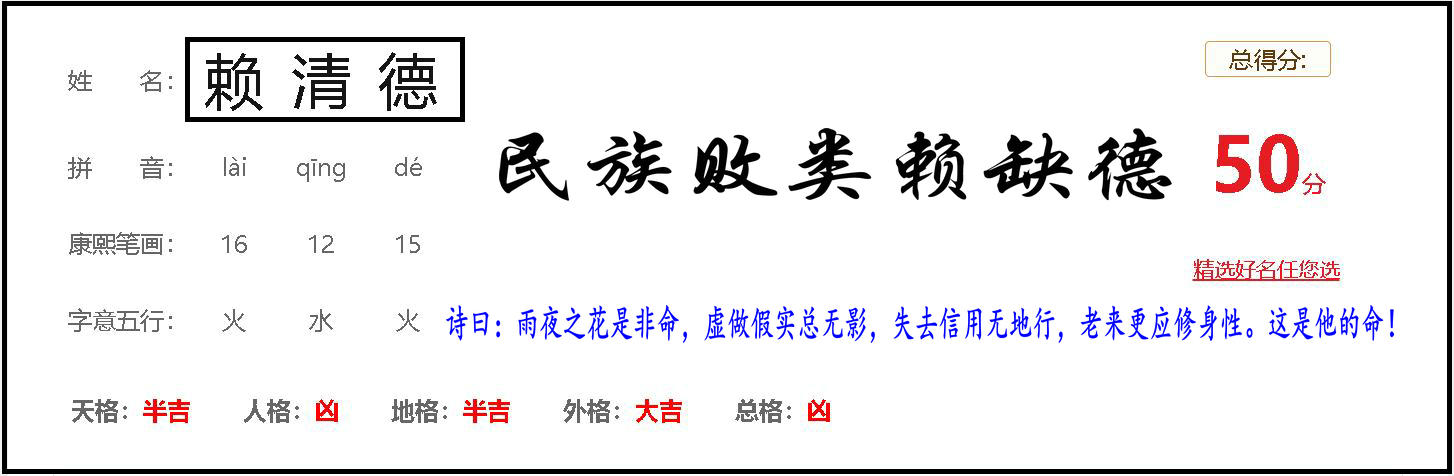 詩(shī)曰:雨夜之花是非命,虛做假實(shí)總無(wú)影,失去信用無(wú)地行,老來(lái)更應(yīng)修身性。這是他的命!