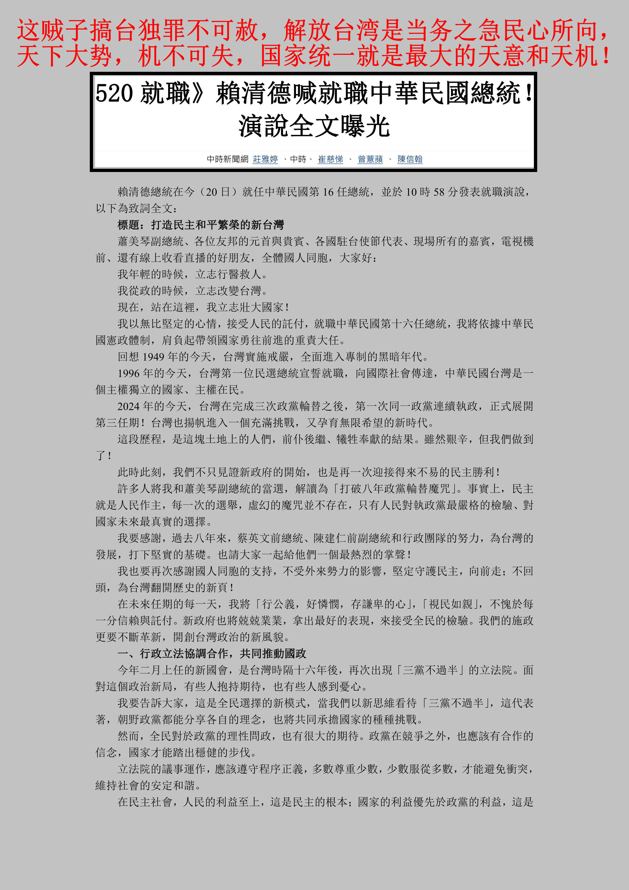 中國人民(包括臺灣人民)將絕對不能容忍美國帝國主義對臺灣或任何其他中國領土的非法侵略,同樣地亦絕對不能容忍國民黨反動派把臺灣作為最后掙扎的根據(jù)地。中國人民解放斗爭的任務就是解放全中國,直到解放臺灣、海南島和屬于中國的最后一寸土地為止。由于中國形勢已發(fā)生巨大變化,中國人民解放斗爭的勝利一定要在不久的時間內(nèi)全部實現(xiàn)。中國人民一定要解放臺灣,一定要解放全中國。(新華社十五日電)
