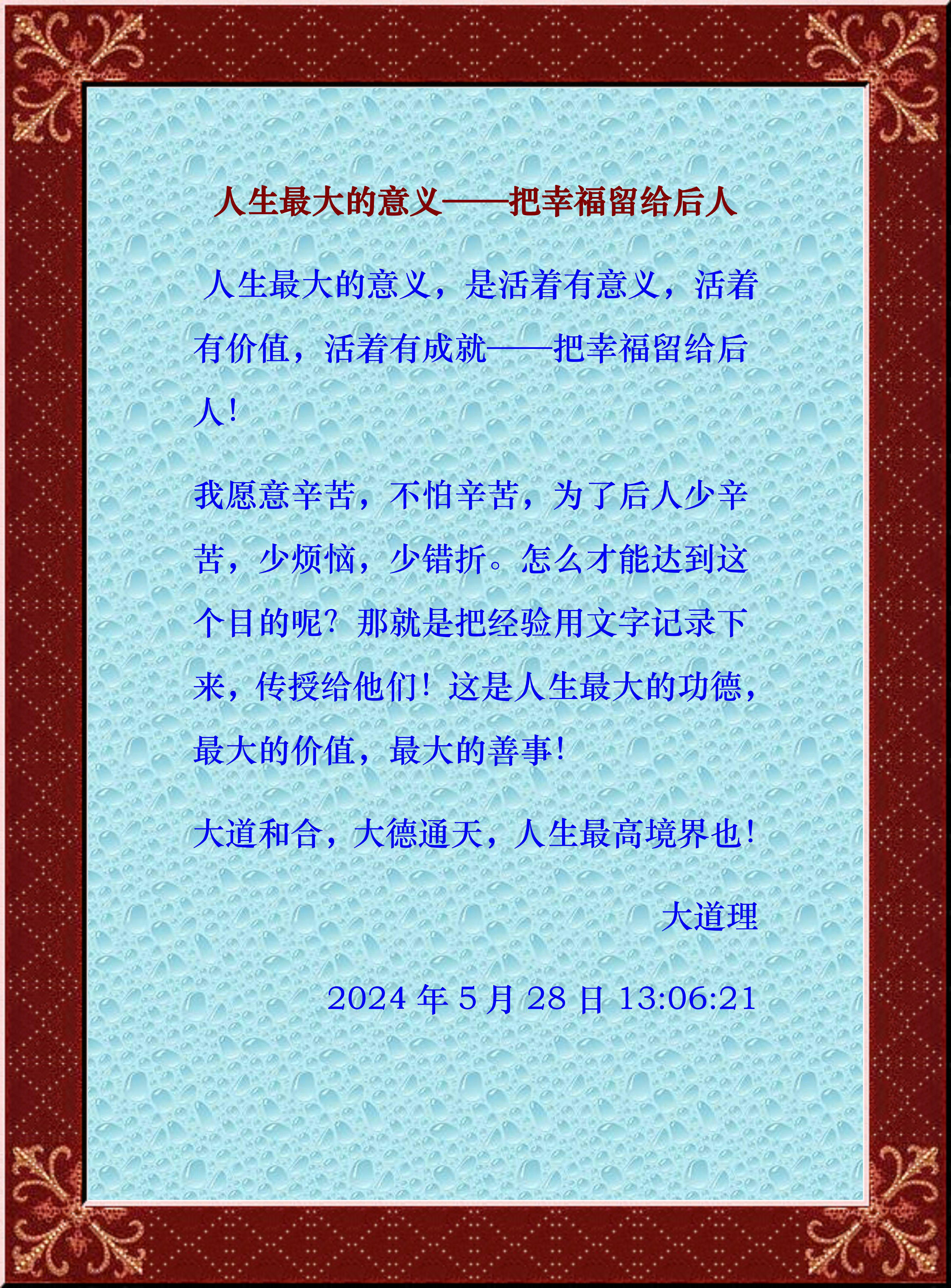 人生最大的意義,是活著有意義,活著有價值,活著有成就——把幸福留給后人!