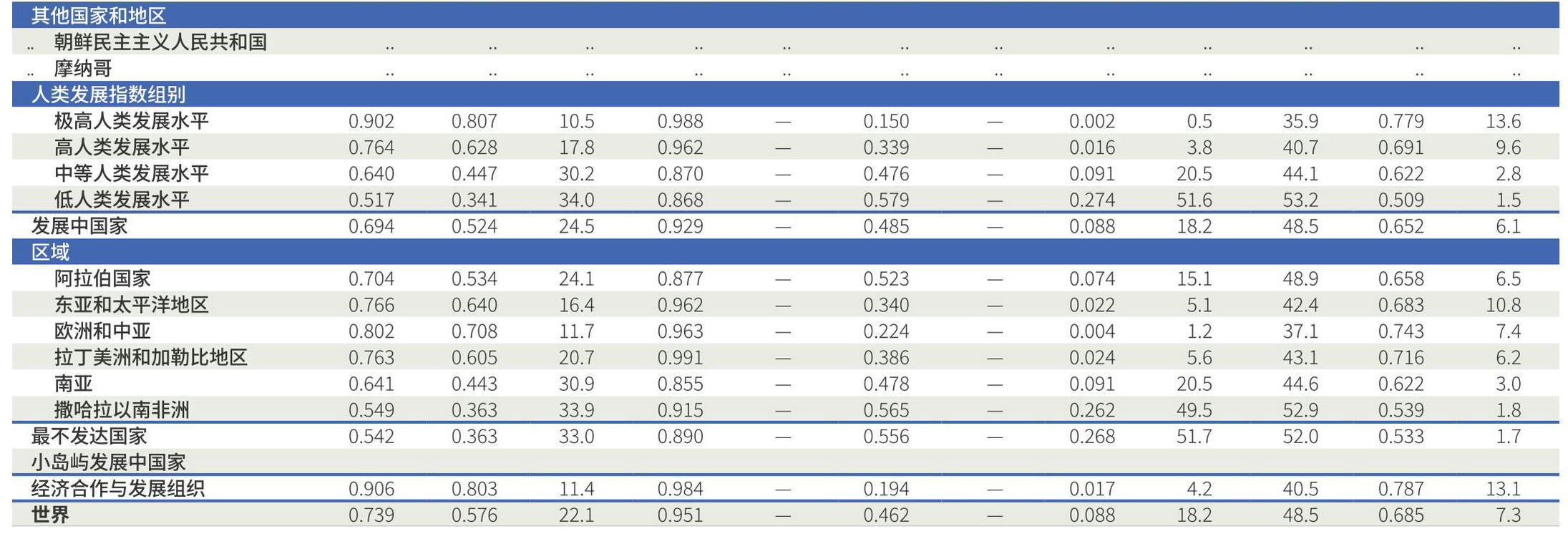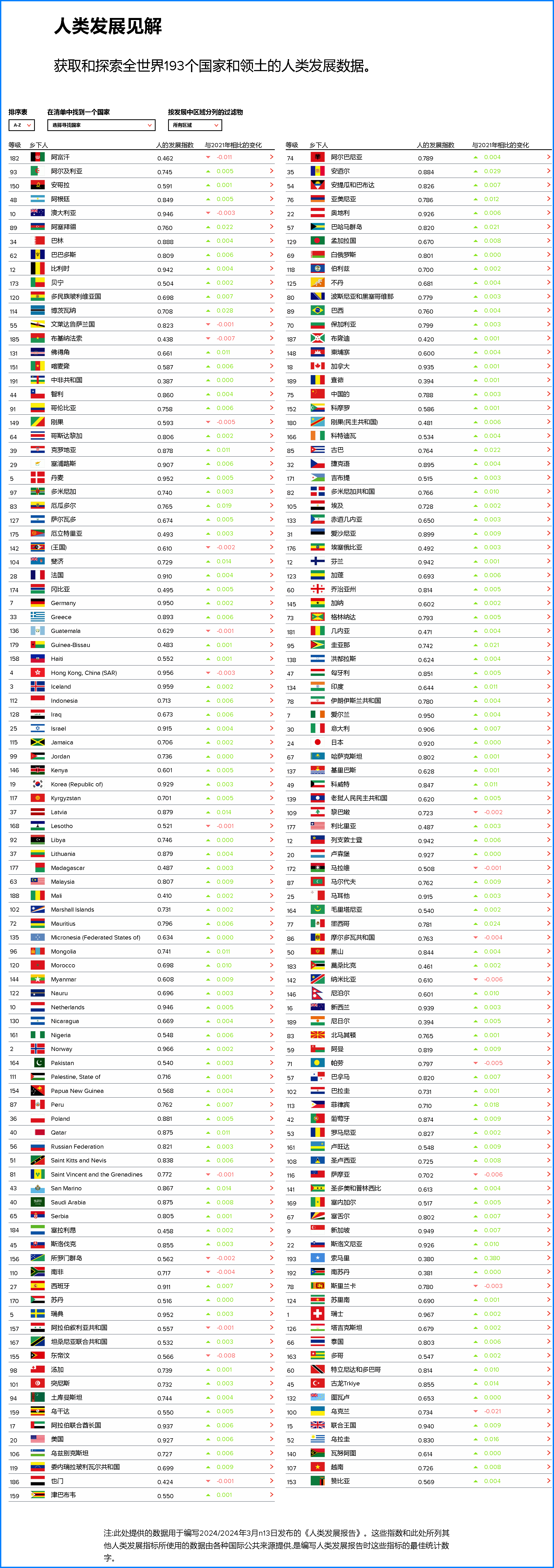 等級 國家或地區(qū) 人的發(fā)展指數(shù) 與2021年相比的變化
