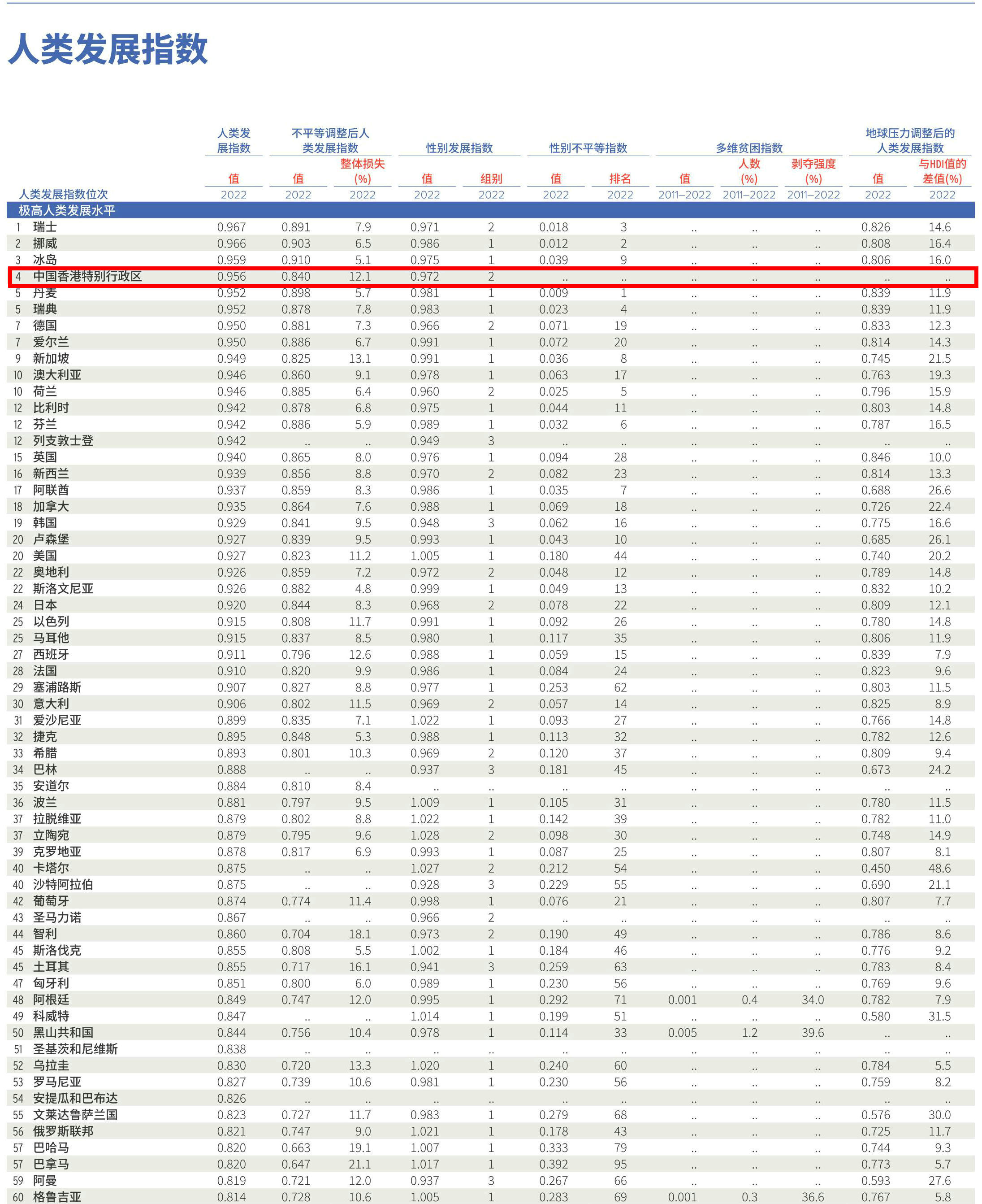 4 中國香港(特別行政區(qū)) 0.956 -0.003