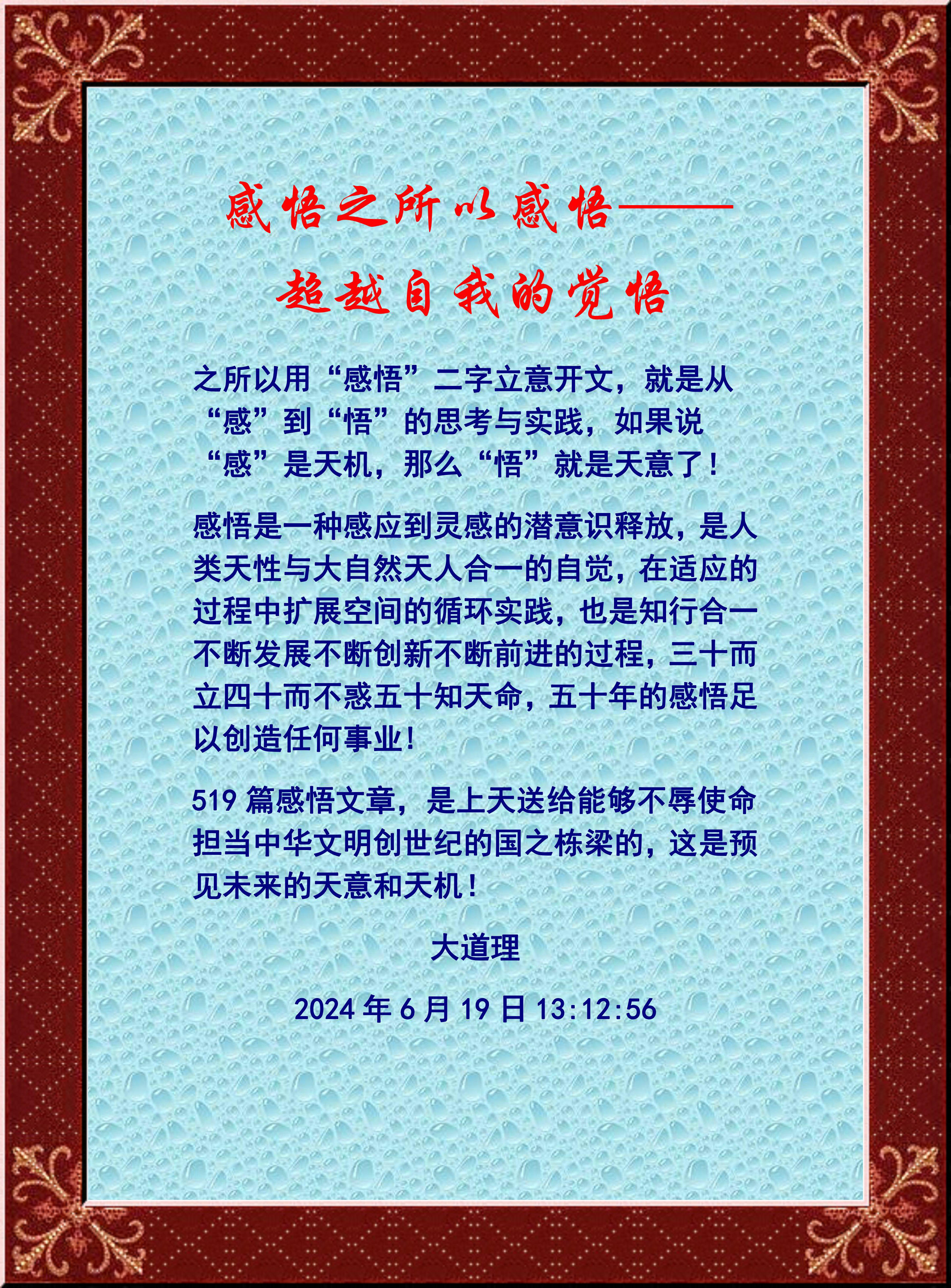 519篇感悟文章,是上天送給能夠不辱使命擔(dān)當(dāng)中華文明創(chuàng)世紀(jì)的國之棟梁的,這是預(yù)見未來的天意和天機(jī)!