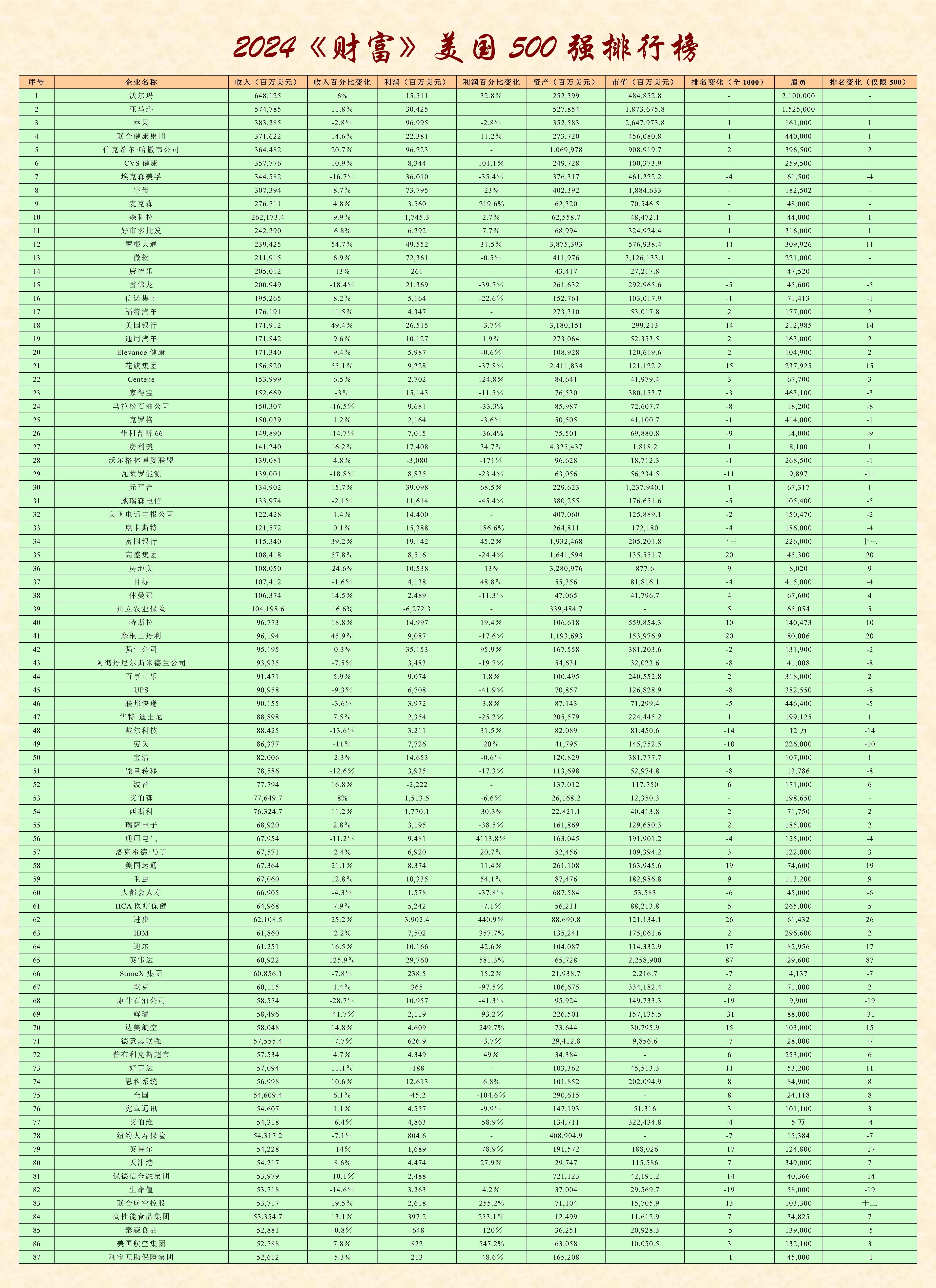 2024《財(cái)富》美國(guó)500強(qiáng)排行榜