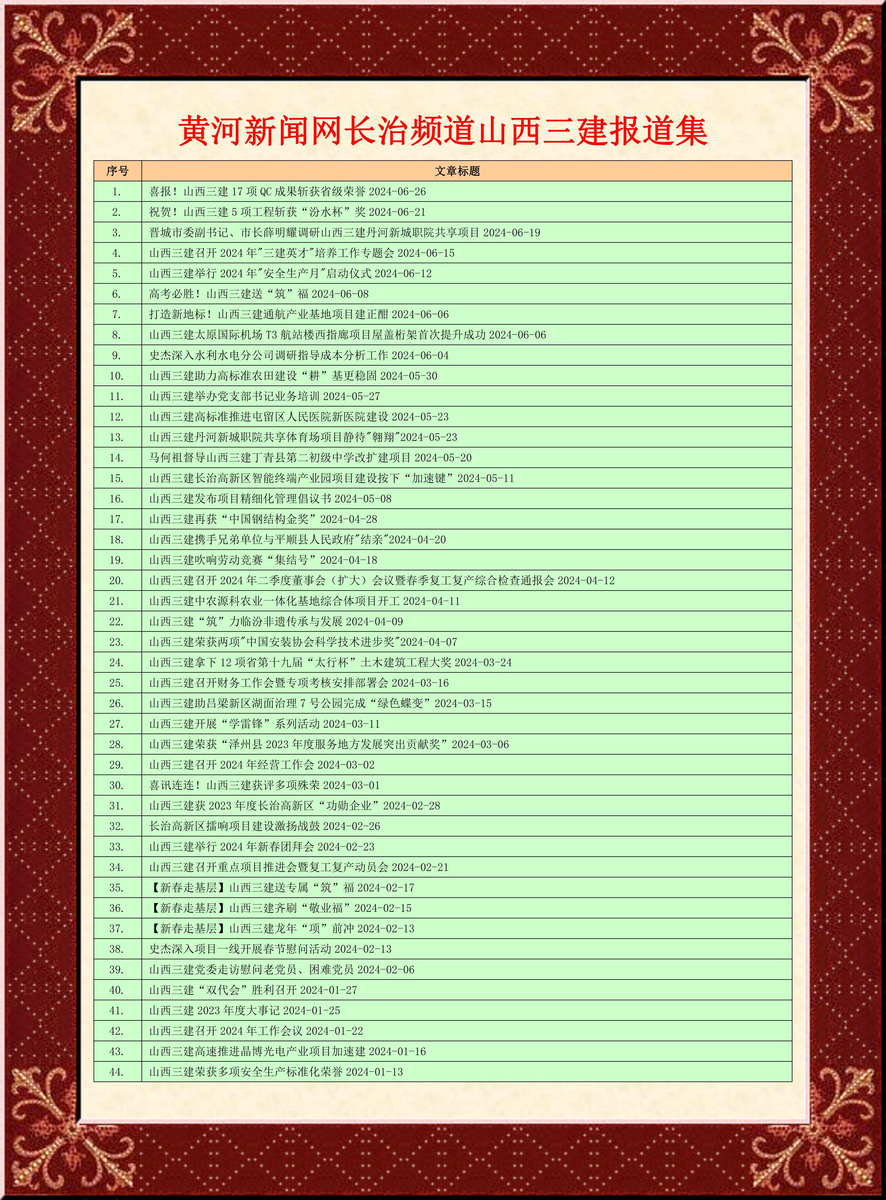 2003年通過質(zhì)量/環(huán)境/職業(yè)健康安全體系認(rèn)證。集團(tuán)擁有省級(jí)企業(yè)技術(shù)中心,技術(shù)力量雄厚,施工經(jīng)驗(yàn)豐富,承建過眾多的大型、重點(diǎn)、標(biāo)志性工程項(xiàng)目,創(chuàng)建了大批優(yōu)質(zhì)工程,累計(jì)獲得建筑工程魯班獎(jiǎng)4項(xiàng)、國家優(yōu)質(zhì)工程2項(xiàng)、中國鋼結(jié)構(gòu)金獎(jiǎng)2項(xiàng)、中國安裝之星1項(xiàng)、汾水杯27項(xiàng)、太行杯29項(xiàng)、省優(yōu)工程88項(xiàng),擁有專利技術(shù)125項(xiàng)、著作權(quán)2項(xiàng)、山西省科技成果登記5項(xiàng)、施工工法114項(xiàng)、建筑業(yè)新技術(shù)應(yīng)用示范工程106項(xiàng)、建筑業(yè)綠色示范工程4項(xiàng)。