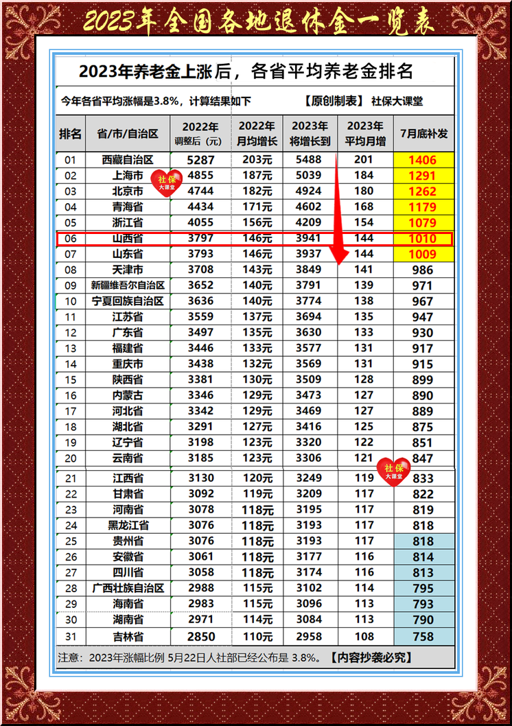 全國(guó)各地退休工資一覽表——2022年31個(gè)省份平均退休金排名更新